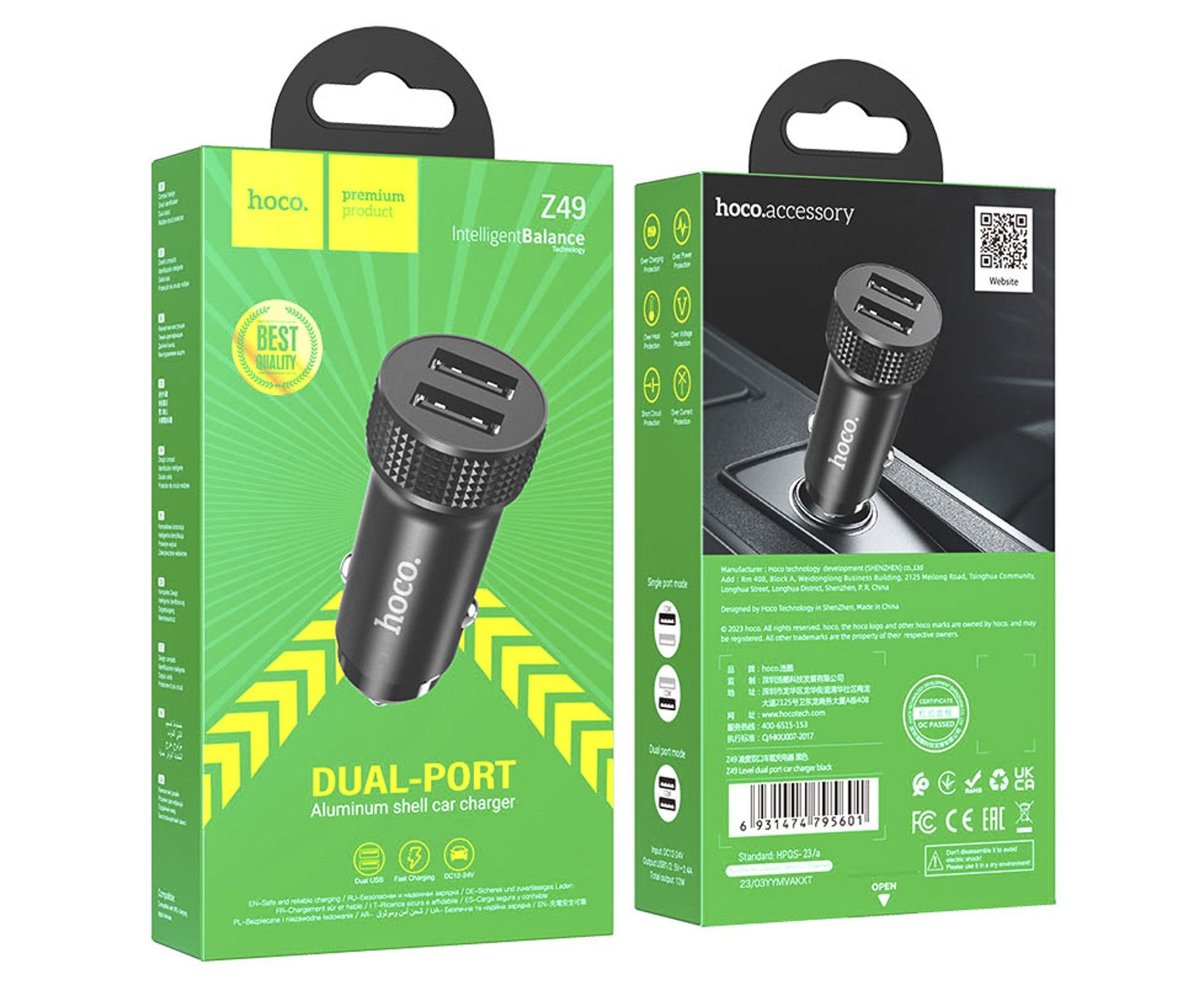 Адаптер Автомобильный Hoco Z49A Level QC3.0 (black) (224654)