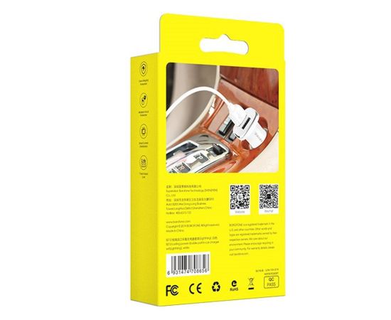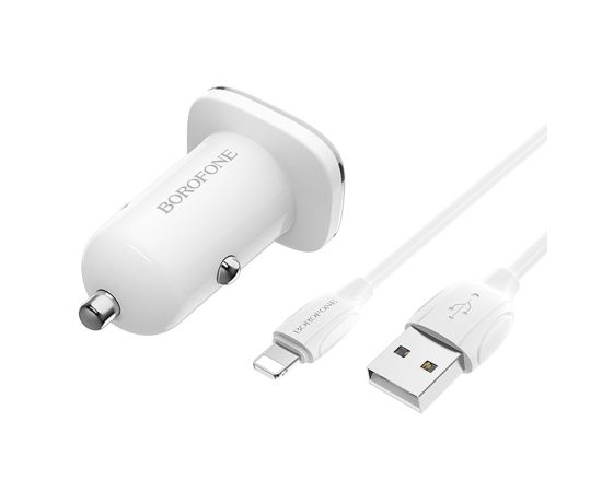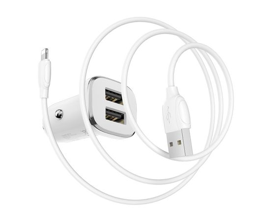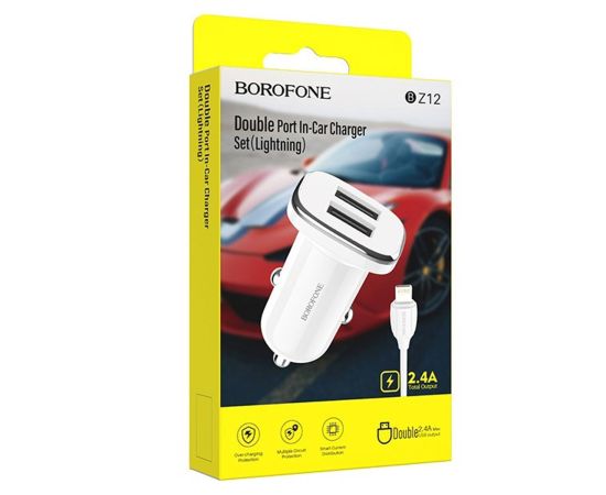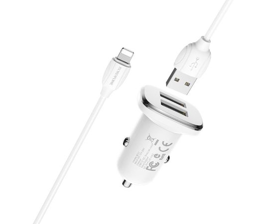 Адаптер Автомобильный с кабелем Borofone BZ12 Lasting 2USB/5V/2.4A +Lightning (white)(123688)