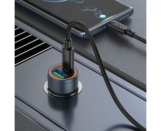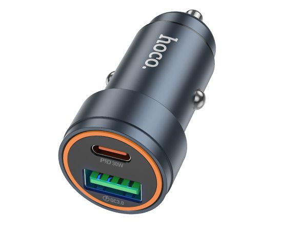 Адаптер Автомобильный с кабелем Hoco Z57A Glorious PD30W+QC3.0 (Type-C/Type-C) (metal gray) (236200)
