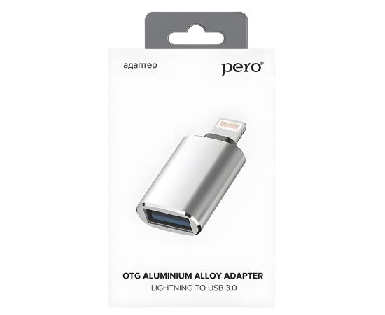 Адаптер PERO AD02 OTG LIGHTNING TO USB 3.0, серебристый