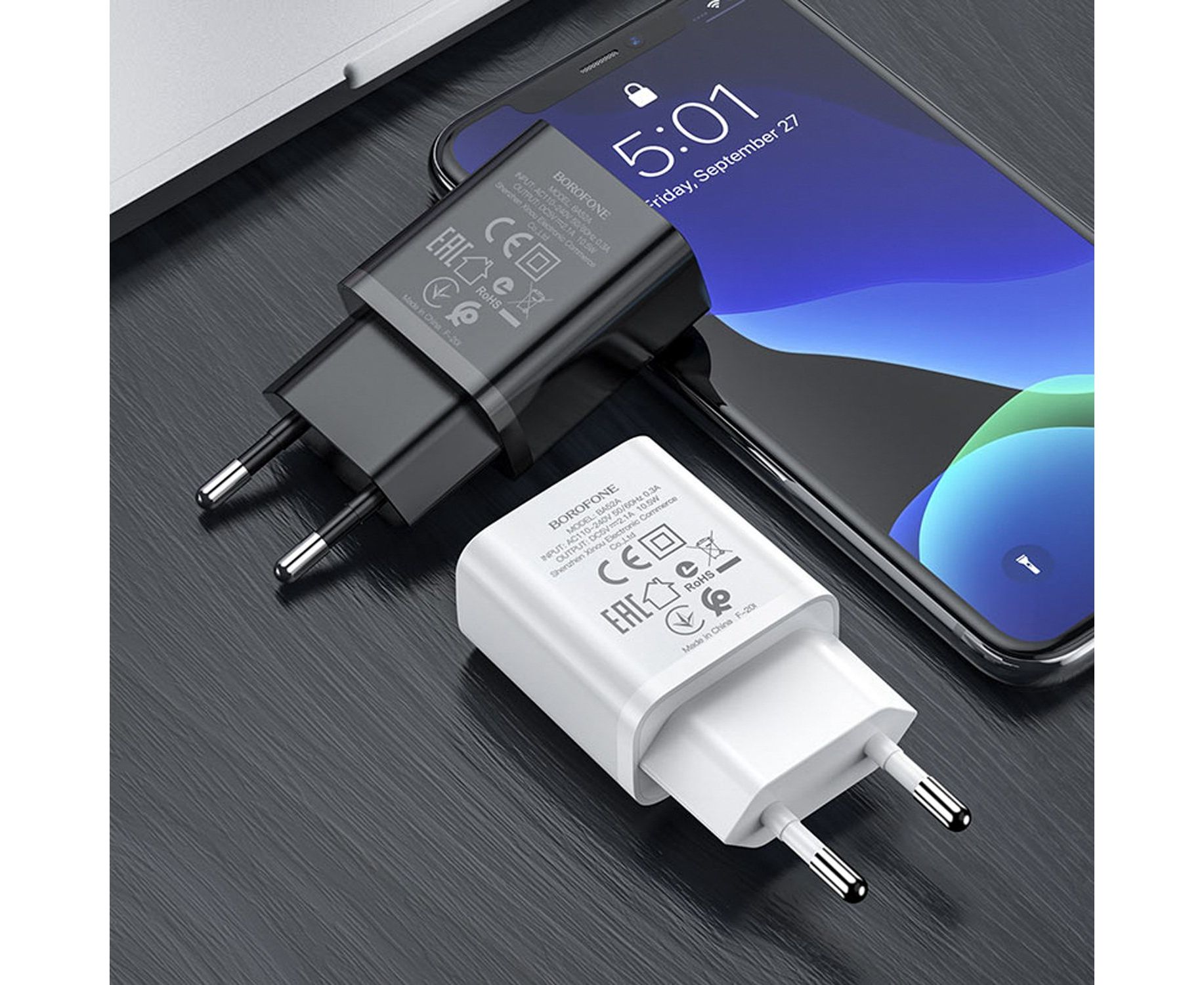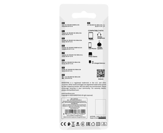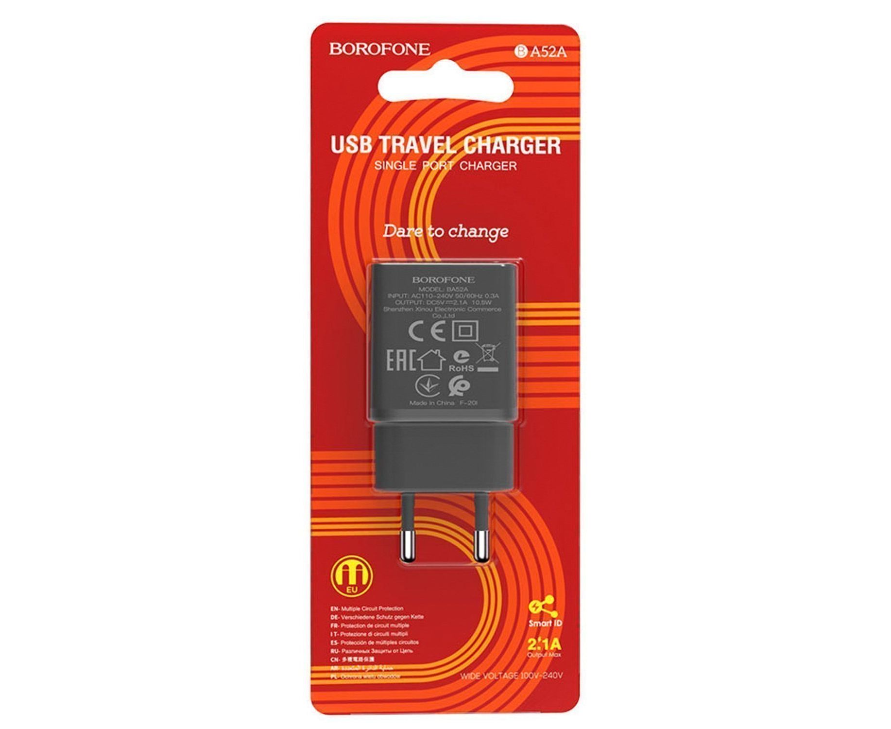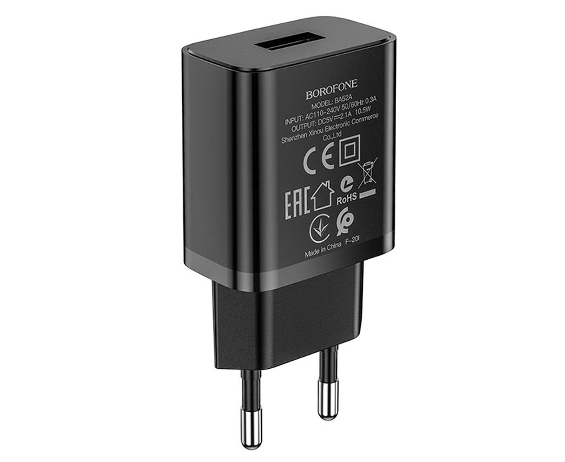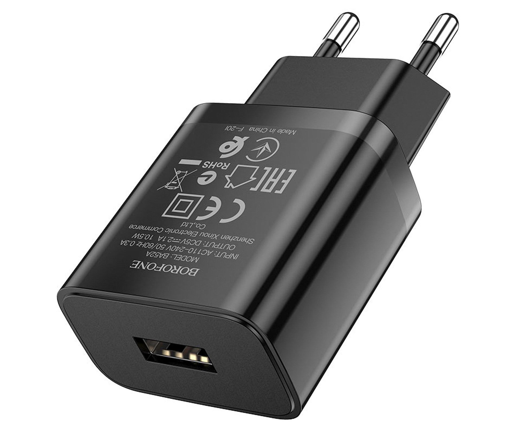 Адаптер Сетевой Borofone BA52A Gamble USB 10W 2,1A (black) (133690)