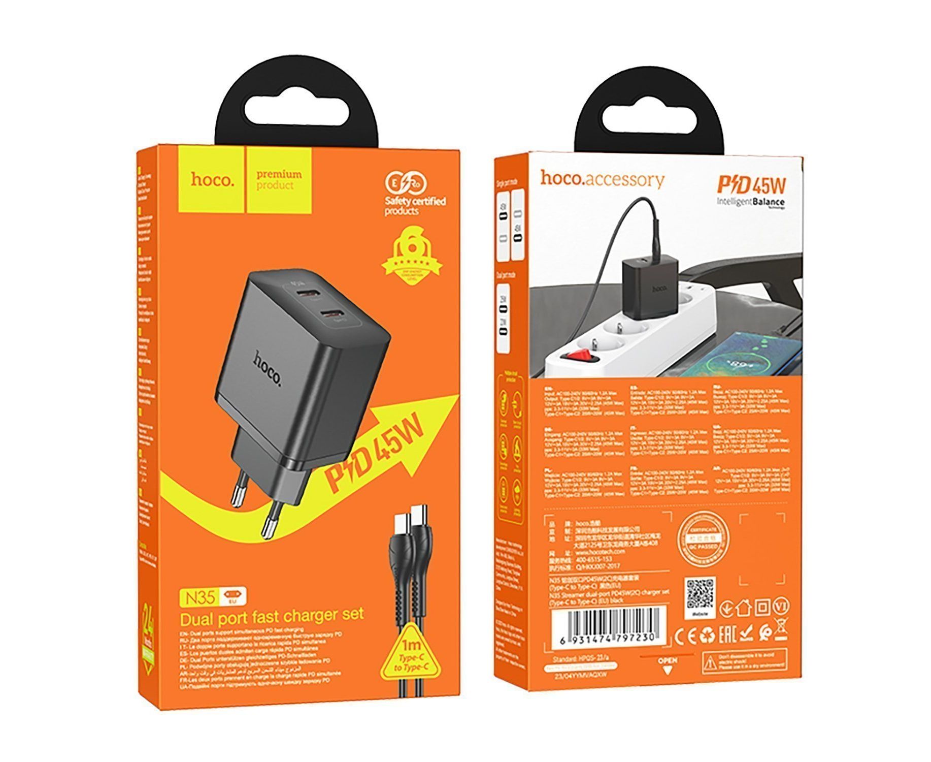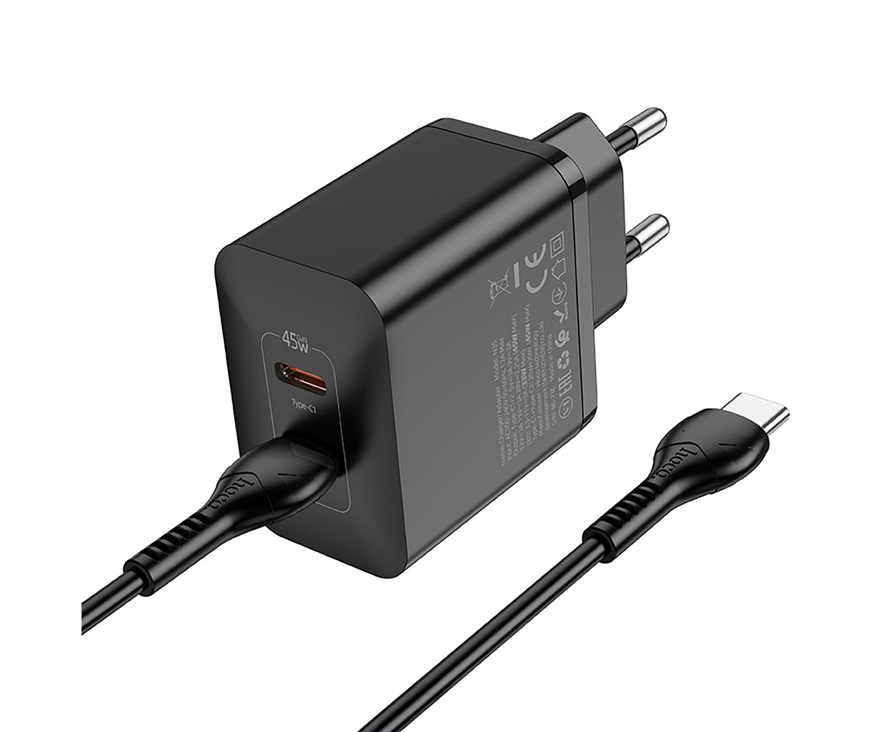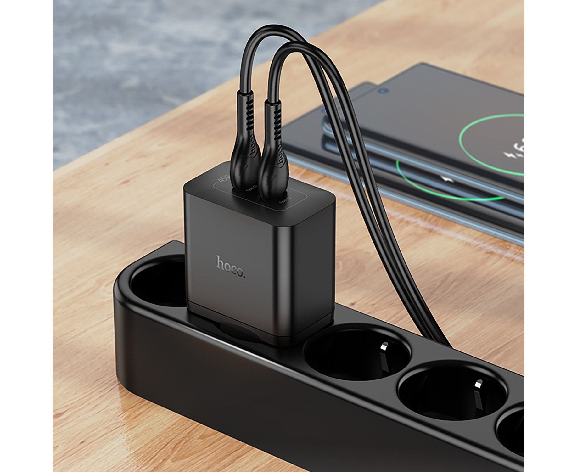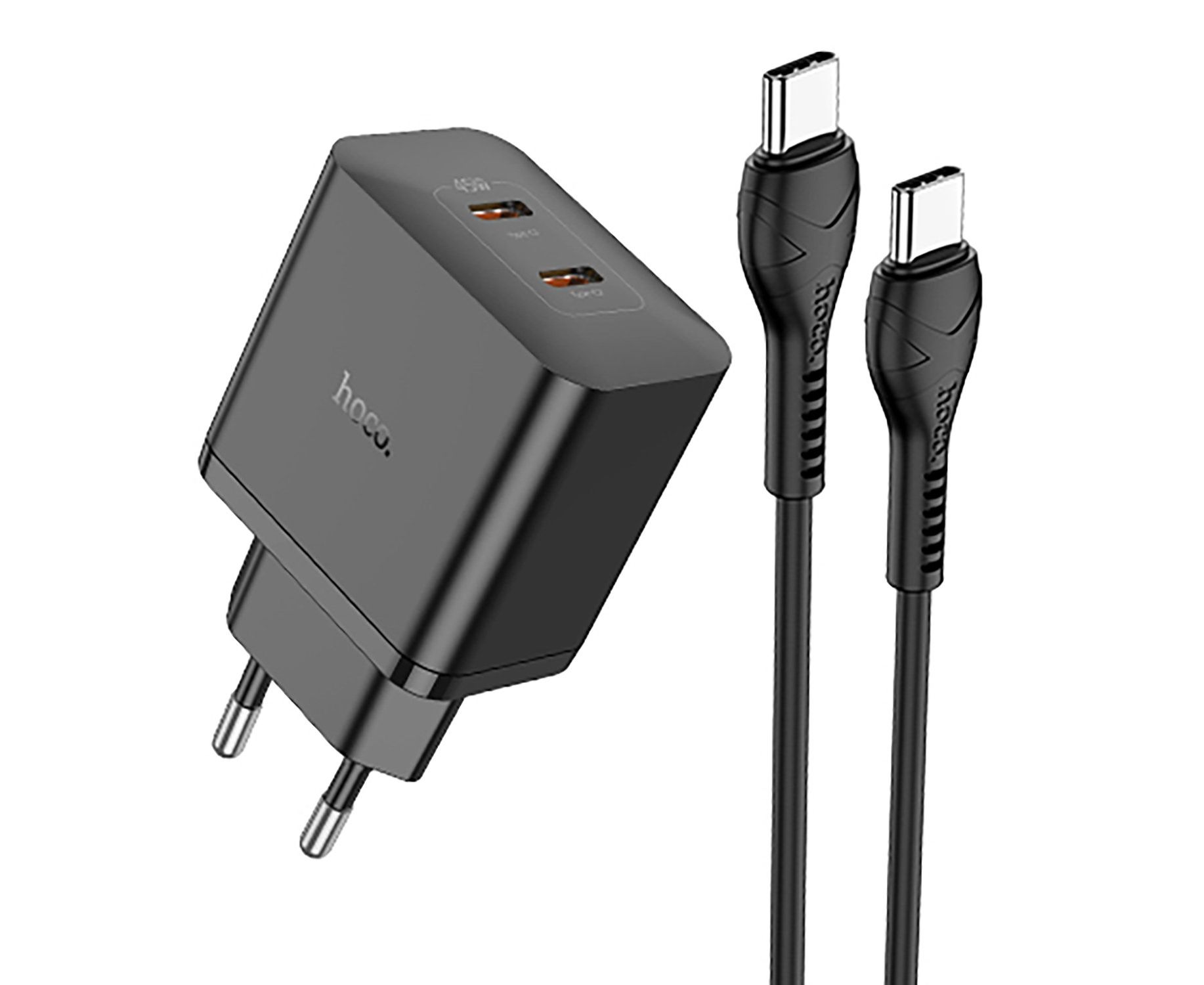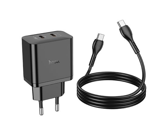 Адаптер Сетевой Hoco N35 Streamer PD GaN 2*Type-C 3A/45W (black) (241005)