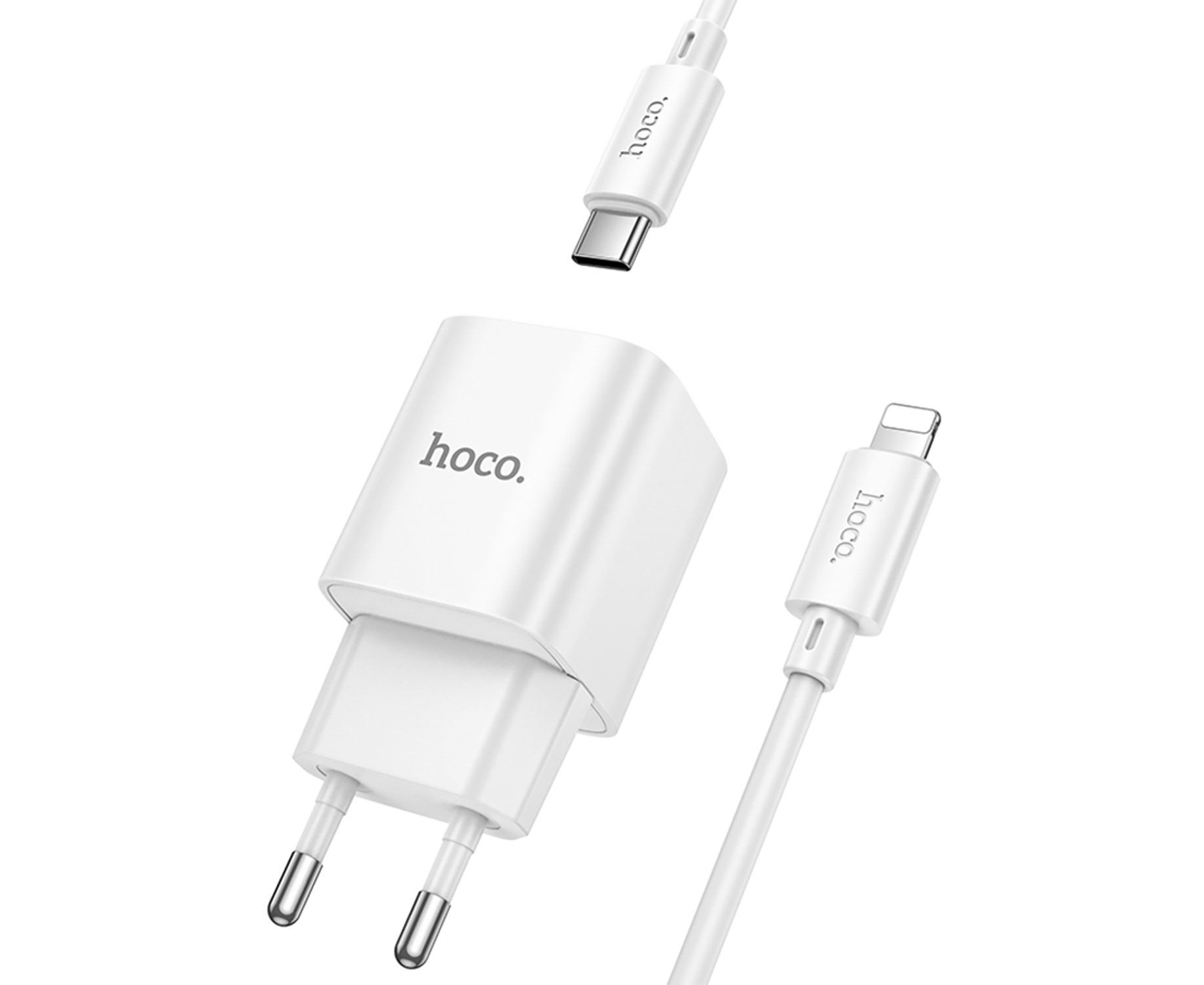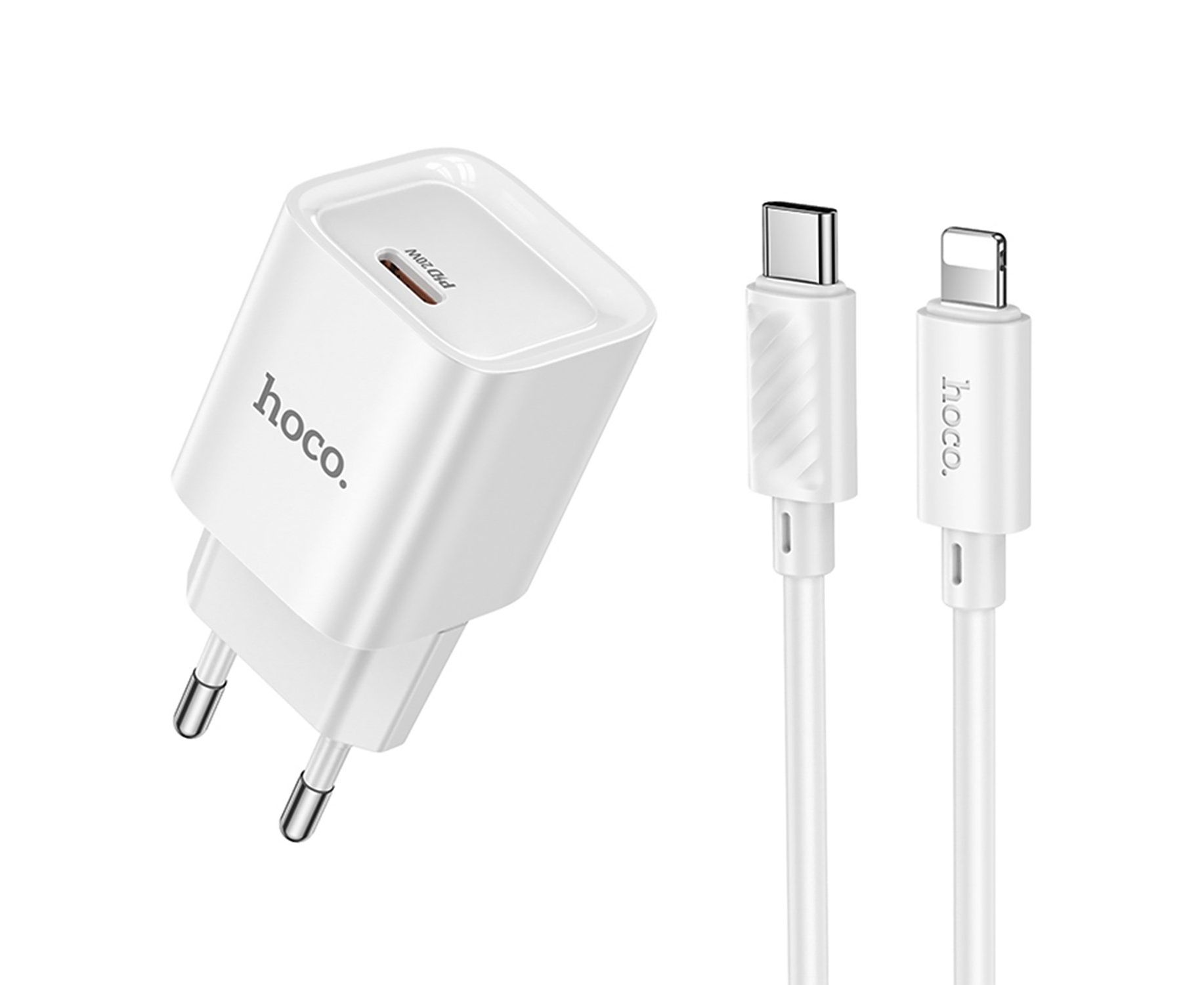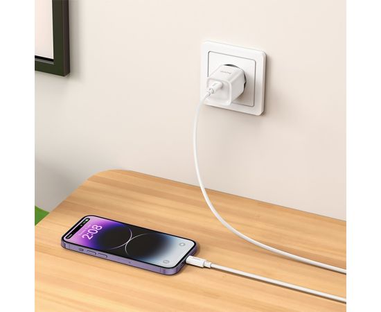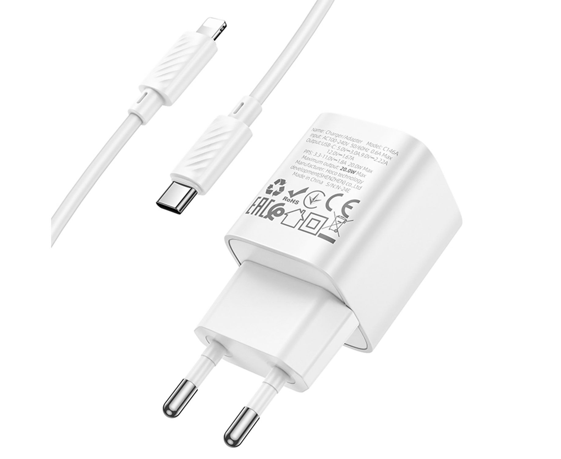 Адаптер Сетевой с кабелем Hoco C146A Charm PD Type-C 20W (Type-C/Lightning) (white) (238659)
