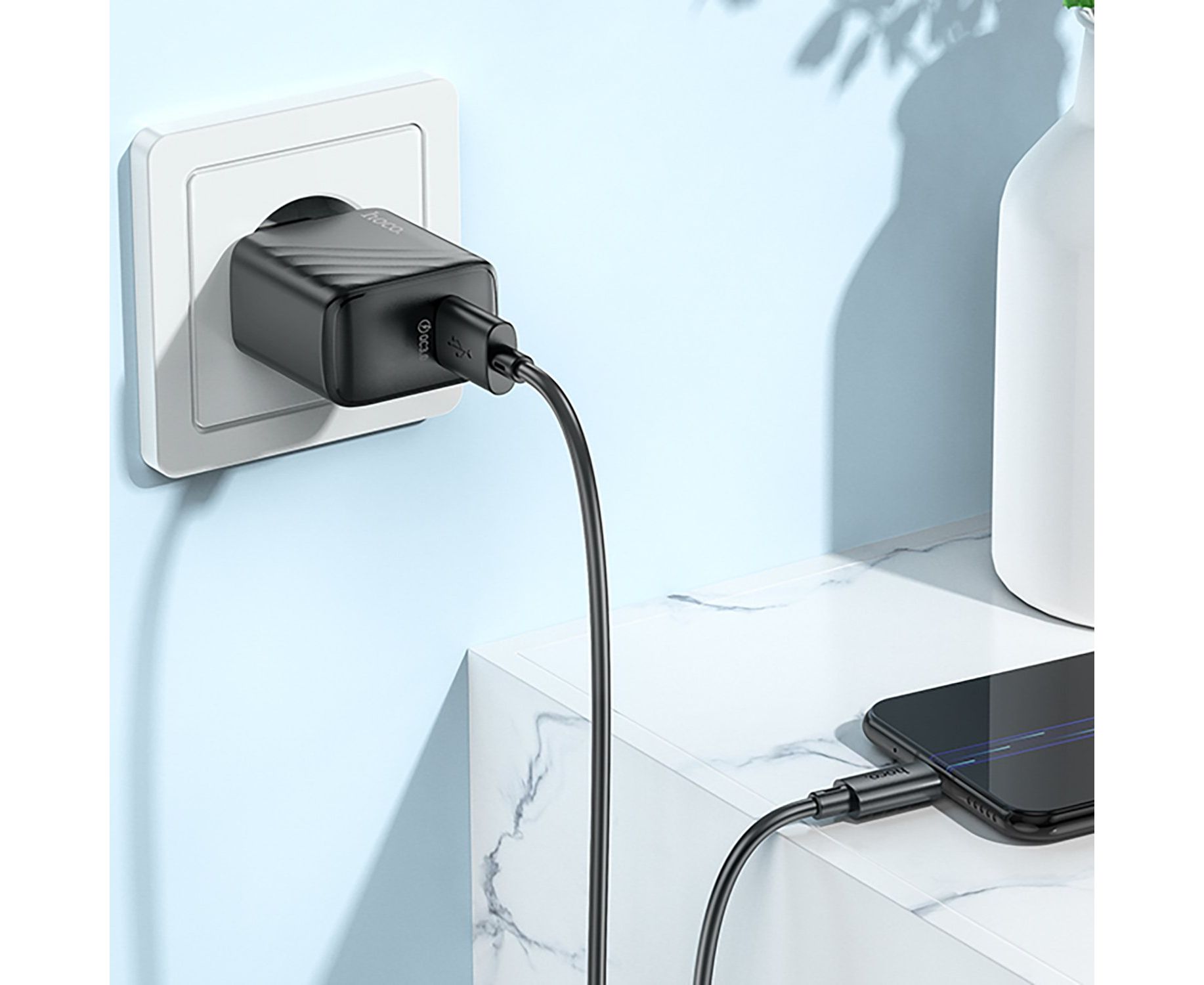 Адаптер Сетевой с кабелем Hoco CS21A Rich QC3.0 USB 18W (USB/Micro USB) (black) (222790)