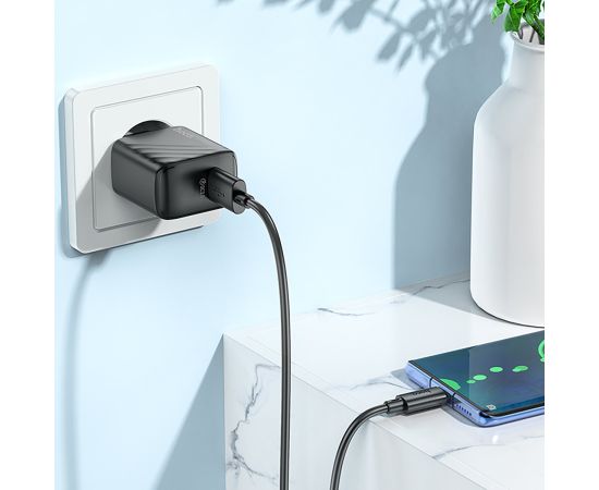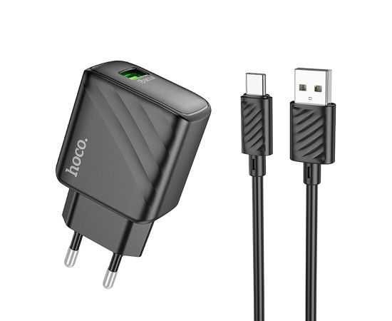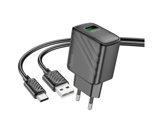 Адаптер Сетевой с кабелем Hoco CS21A Rich QC3.0 USB 18W (USB/Type-C) (black) (222791)