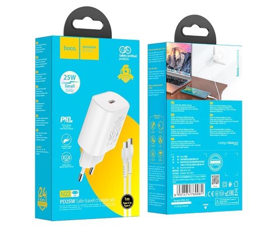 Адаптер Сетевой с кабелем Hoco N22 Jetta PD25W Type-C - iP (white) (213949)