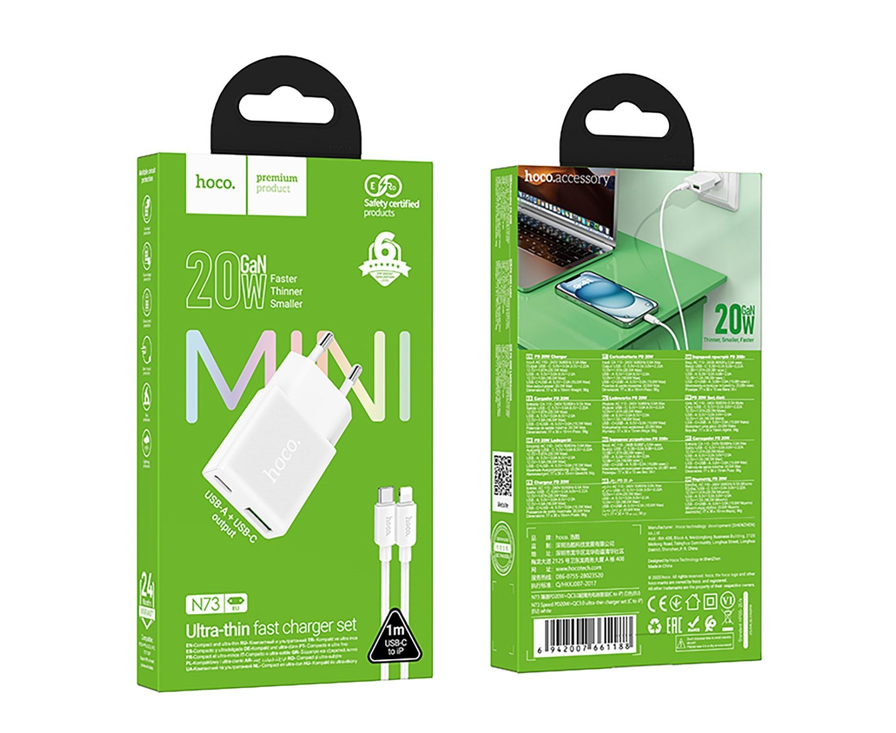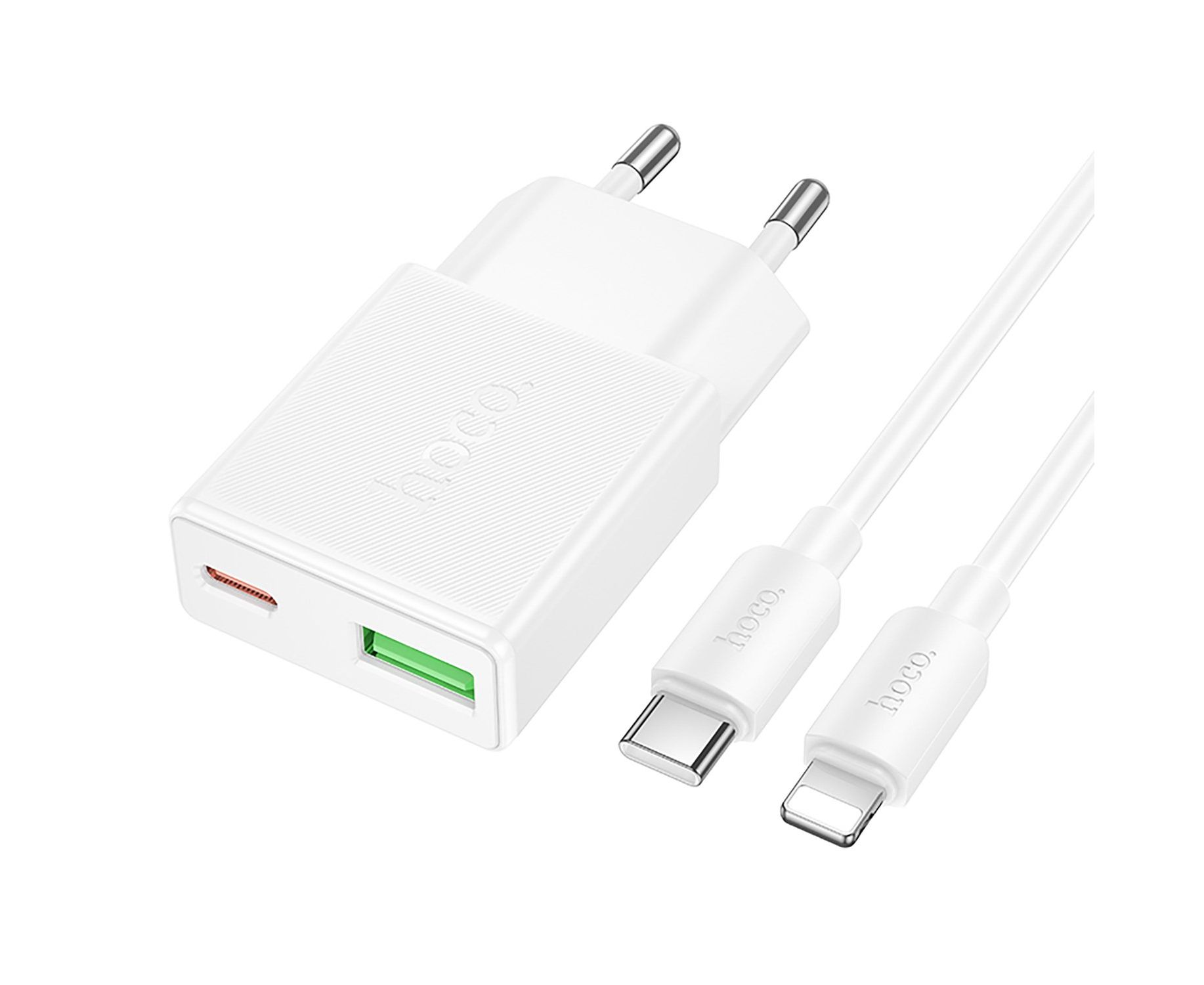 Адаптер Сетевой с кабелем Hoco N73 Mini PD+QC3.0 USB/Type-C 20W (Type-C/Lightning) (white) (242973)