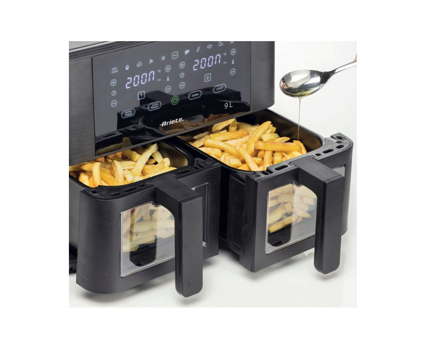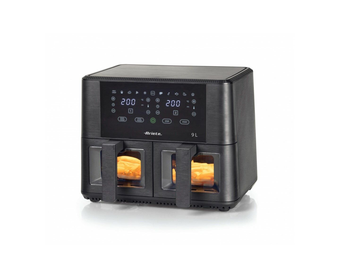 2 независимых корзины, 11 автоматических программ (включая приготовление мяса и рыбы, десертов, пиццы, а также гриль, разморозка и сушка продуктов)