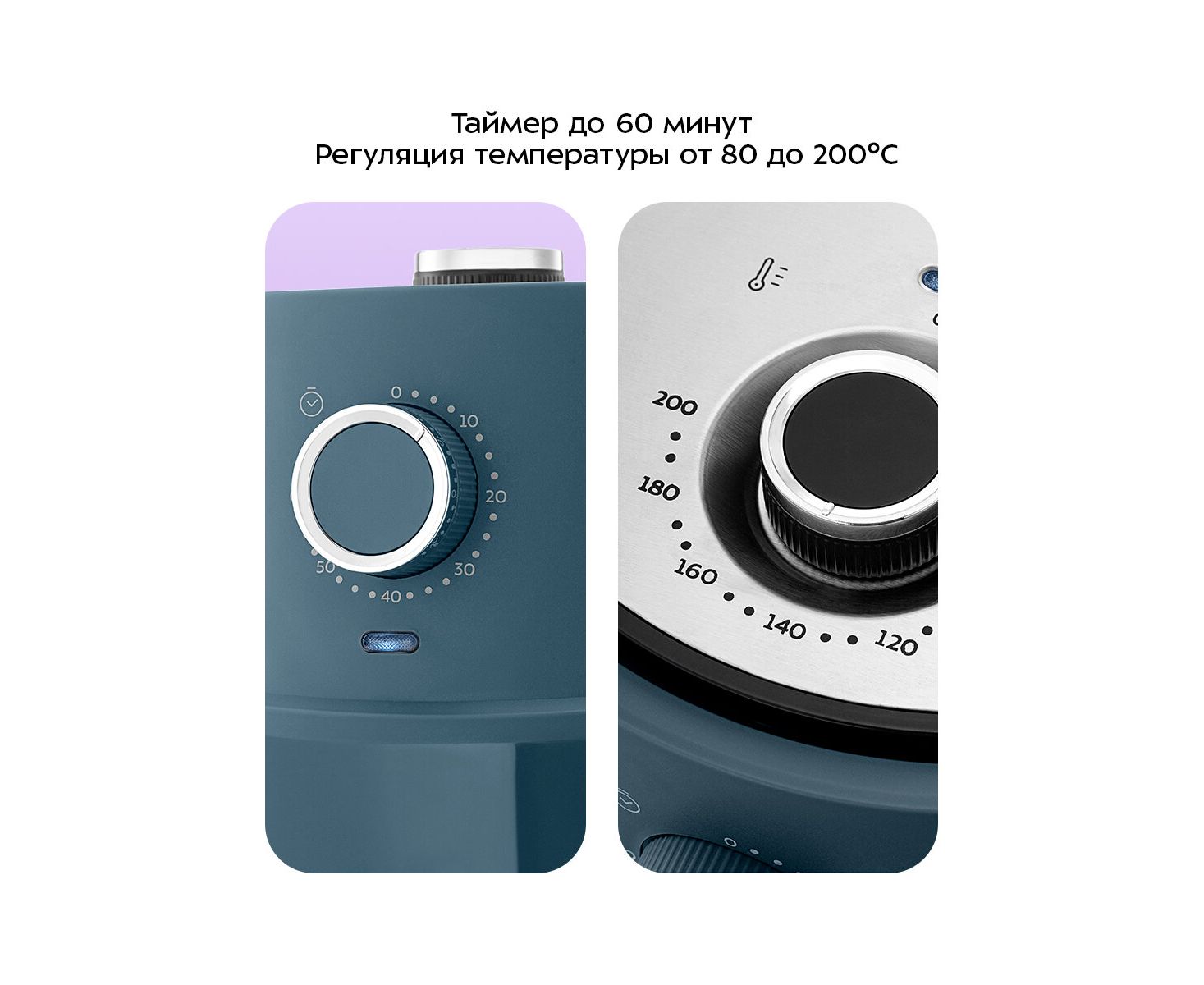 Аэрогриль КТ-8118 оснащён механическим управлением. Можно установить температуру приготовления от 80 до 200 °C и время приготовления до 60 минут. Автоматических программ в аэрогриле не предусмотрено.