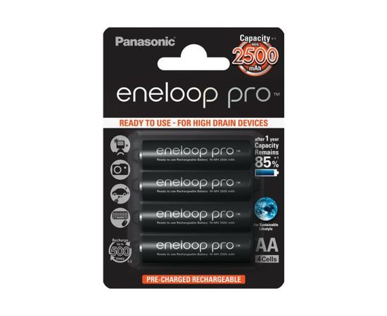 Аккумулятор PANASONIC R6 eneloop pro BK-3HCDE/4BE (2500mAh) (4 бл) (4/80)