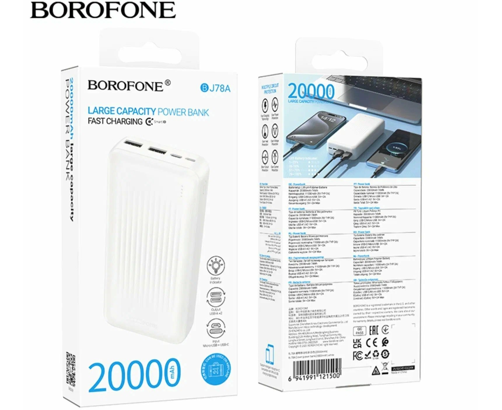 Аккумулятор внешний BOROFONE BJ78A 20000mAh белый