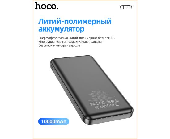 Аккумулятор внешний резервный HOCO J100 High-ranking 10000 mAh (чёрный)