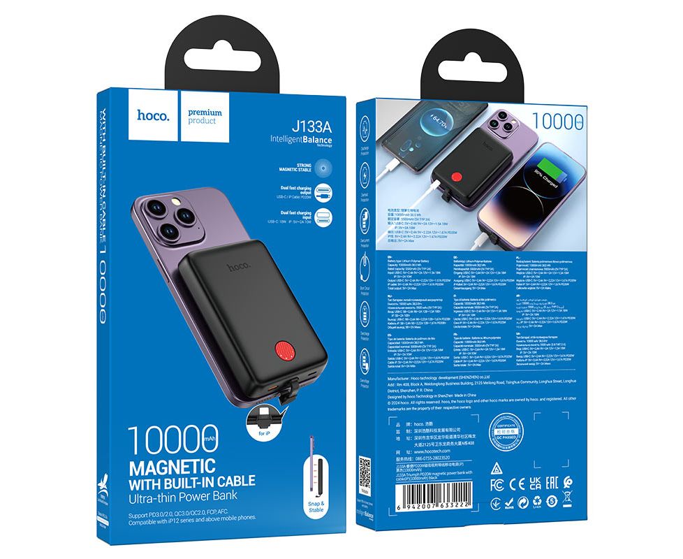 Аккумулятор внешний HOCO J133A Triumph 10000mAh, PD20W, Type-C, 8 pin, кабель Type-C черный