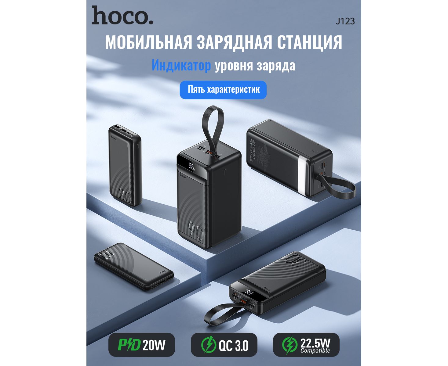 Аккумулятор внешний резервный HOCO J123 Element power bank(10000mAh) (черный)