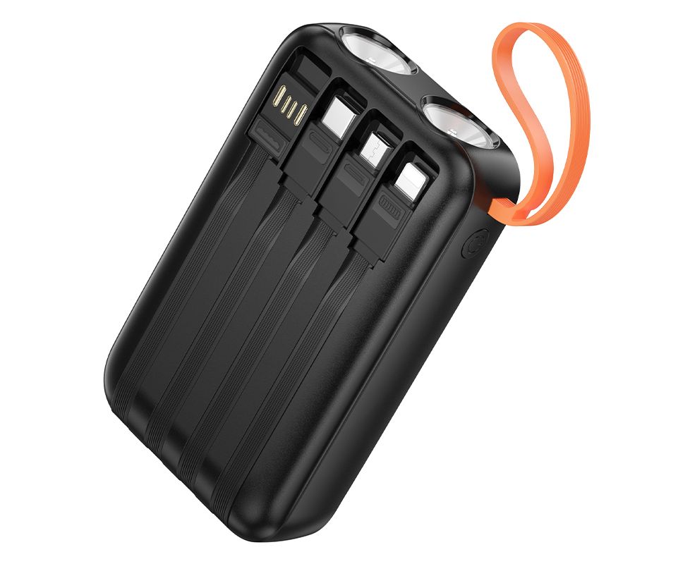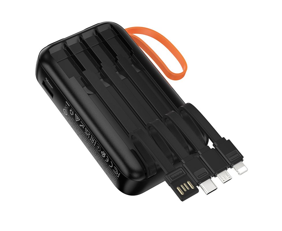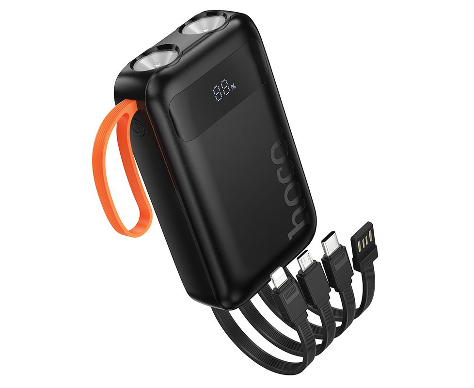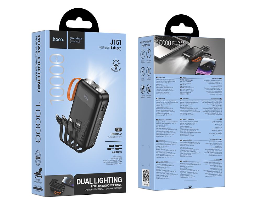 Аккумулятор внешний резервный HOCO J151 Spirit dual lighting four-cable (черный) (10000mAh)