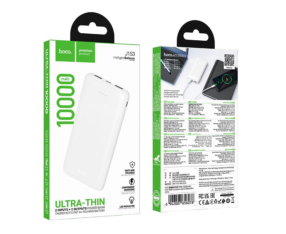 Аккумулятор внешний резервный HOCO J153 Stability 10000mAh белый
