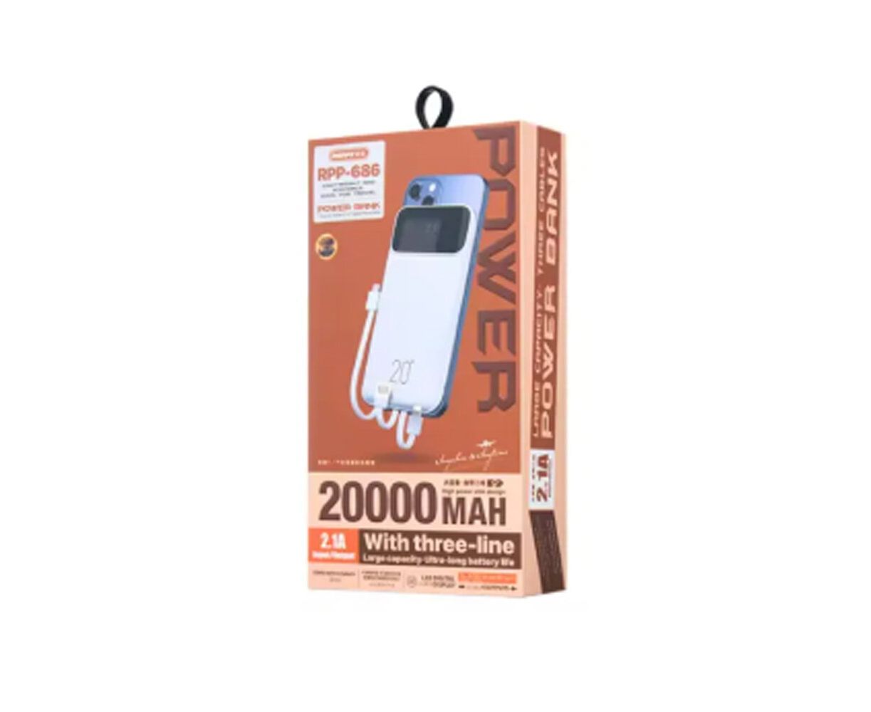 Аккумулятор внешний резервный REMAX Reyluck Series 2.1A Cabled Power Bank 20000mAh RPP-686 (белый)