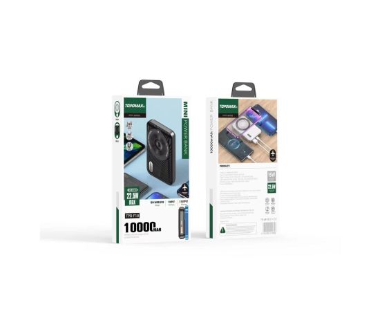 Аккумулятор внешний резервный TOPOMAX TPB-F18 10000mAh, PD 22.5W, wireless charging 15W (черный)
