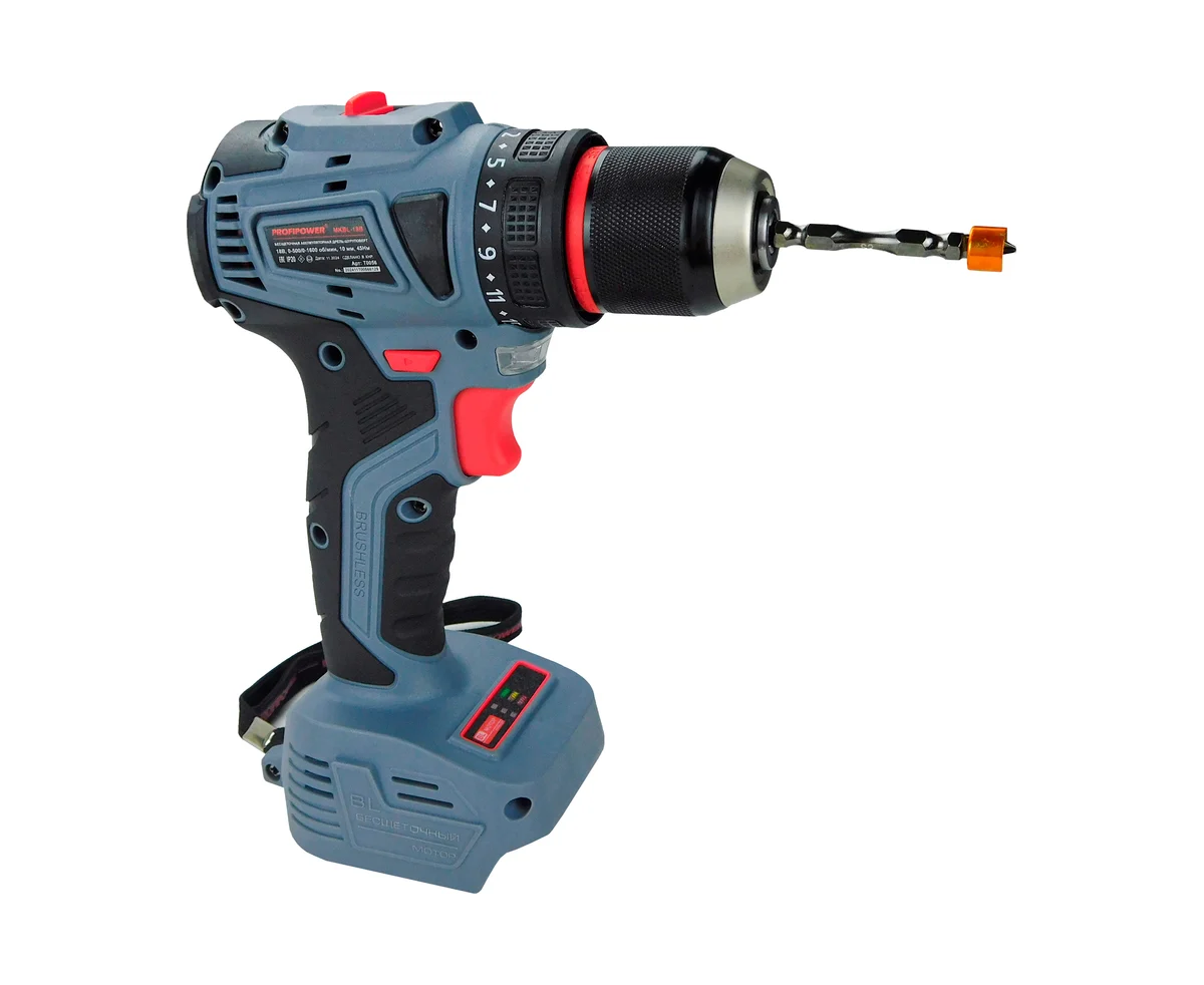 Дрель аккумуляторная бесщеточная ProfiPower MKBL18B предназначена для ремонтных и строительных работ, сверления древесины, металлов, керамики и синтетических материалов, для завинчивания или откручивания винтов, нарезания резьбы.
