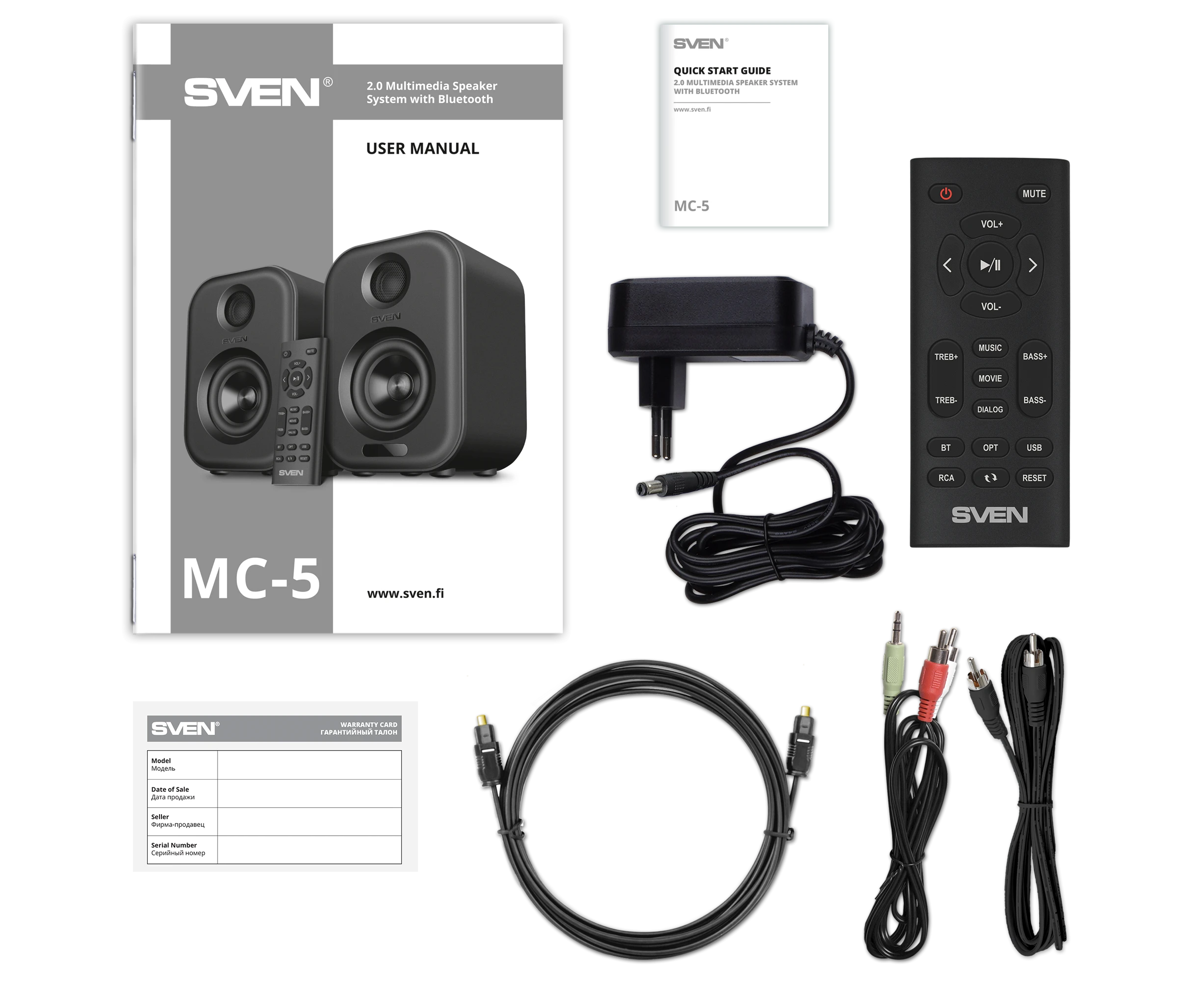 Акустическая система 2.0 SVEN MC-5, серый (50 Вт, Bluetooth, RCA, OPT, USB, microSD, пульт)