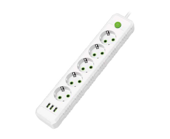 Сетевой удлинитель Amper , 4,0м, 5 розеток, 10А, 2500 Вт, 3usb, белый