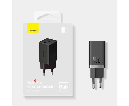 АП сетевой Baseus CCGP180101, 3.0А, 2Type-C, 40W, 5V, пластик, черный