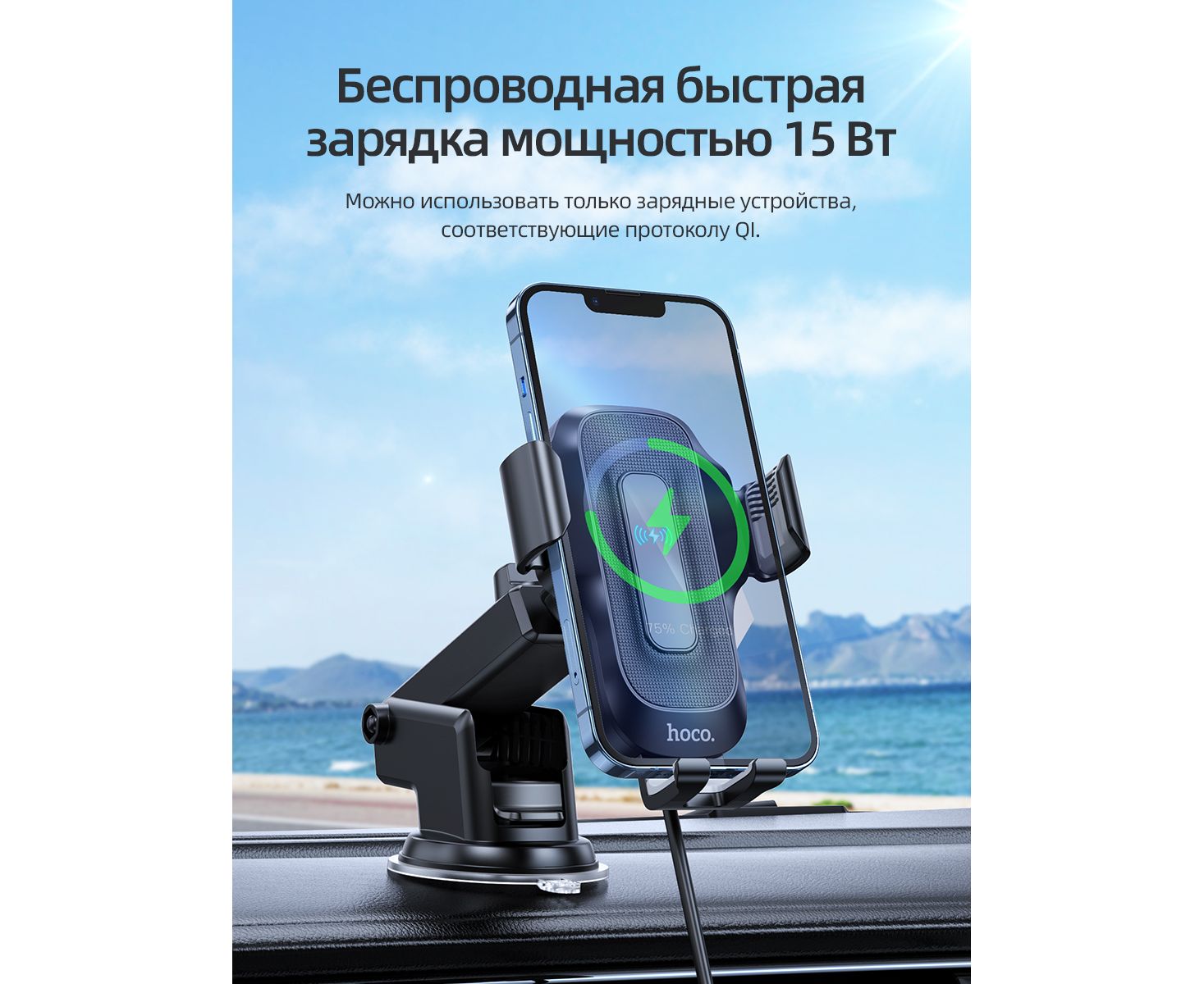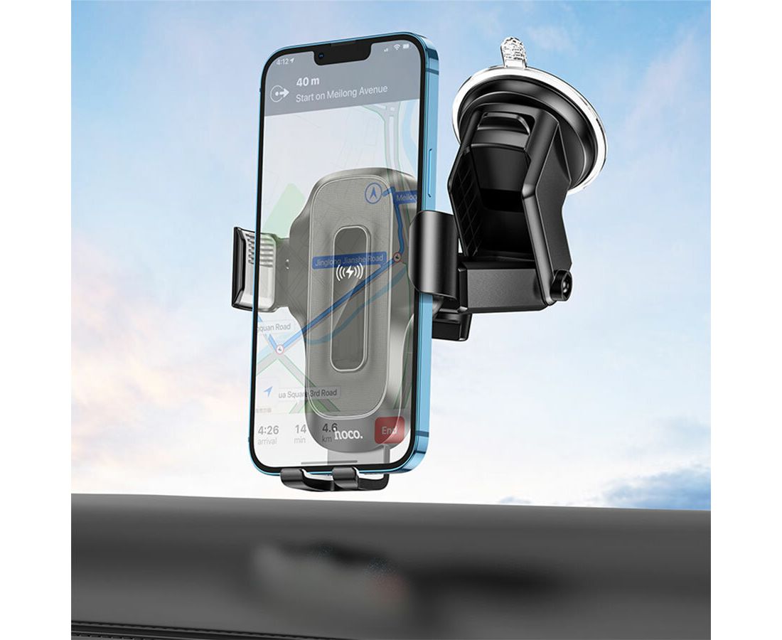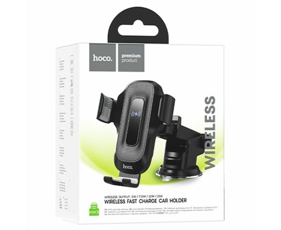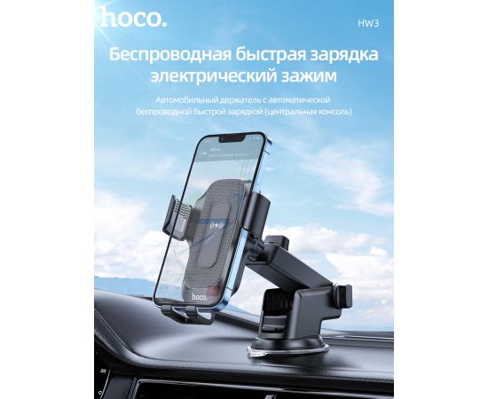 Автомобильный держатель HOCO HW3 Wise automatic induction wireless fast charging car (черный)