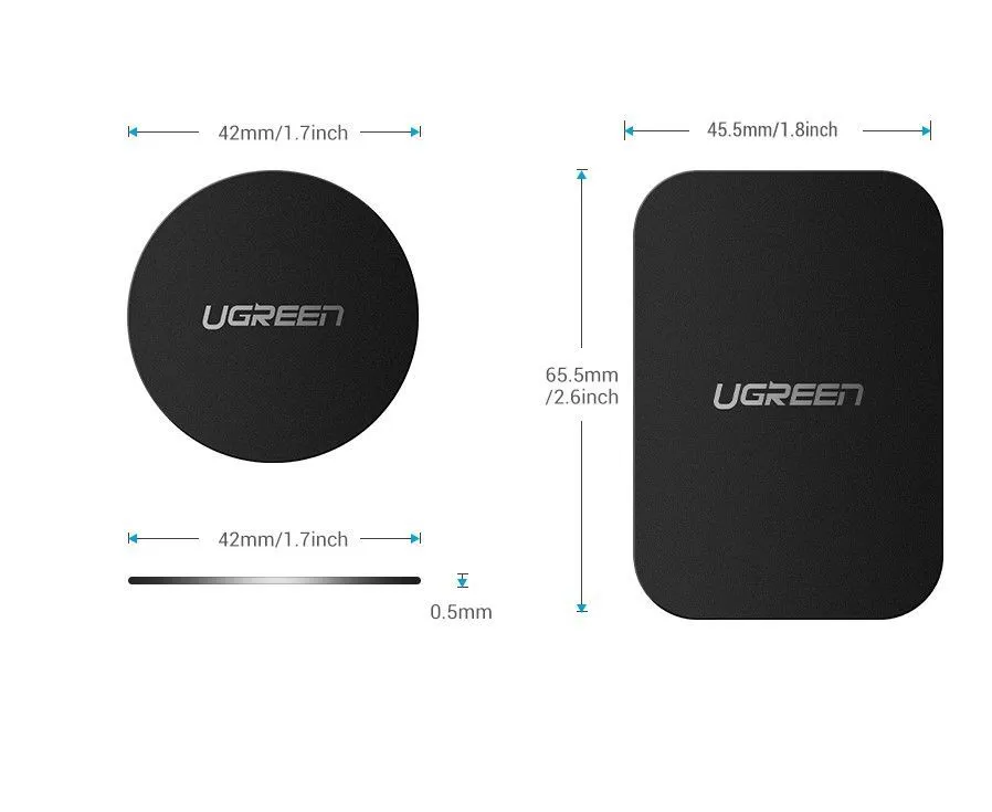 Металлическая пластина круглая и прямоугольная на телефон для магнитного держателя UGREEN LP123 (60410) Rectangular + Rounded Metal Plate for Magnetic Phone Stand 2 Pack