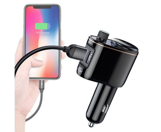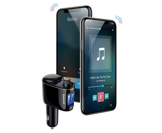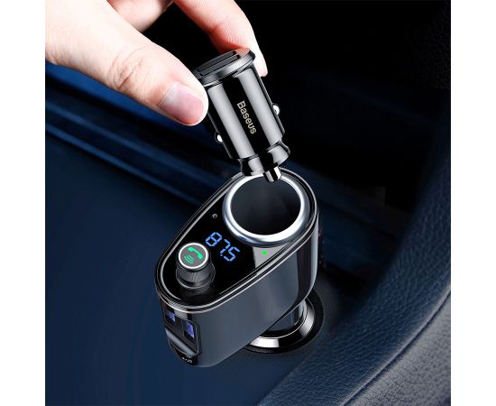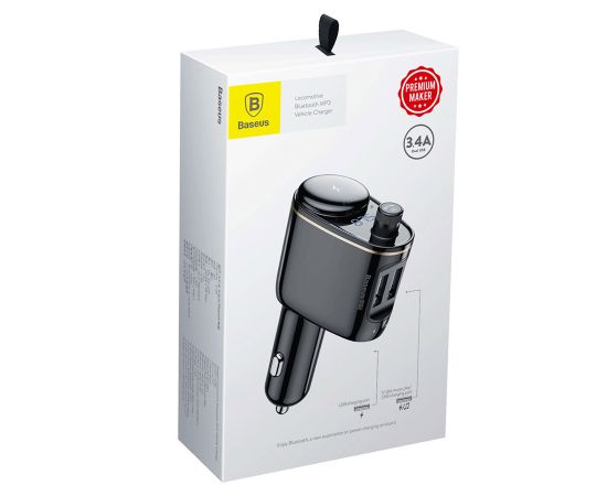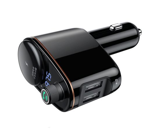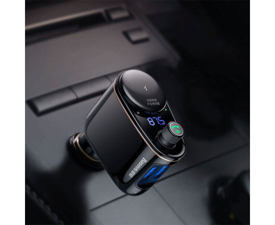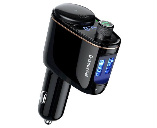 Автомобильное зарядное устройство с FM-Трансмиттер BASEUS S-06, 2xUSB + прикуриватель, 3.4A, черный