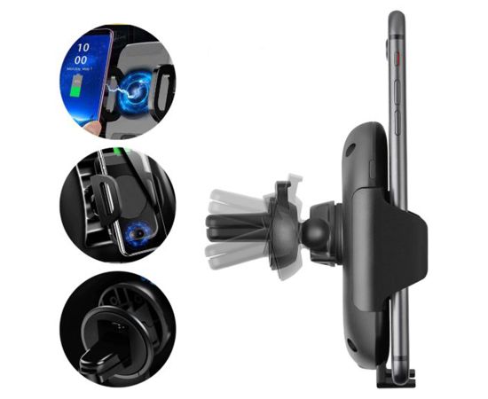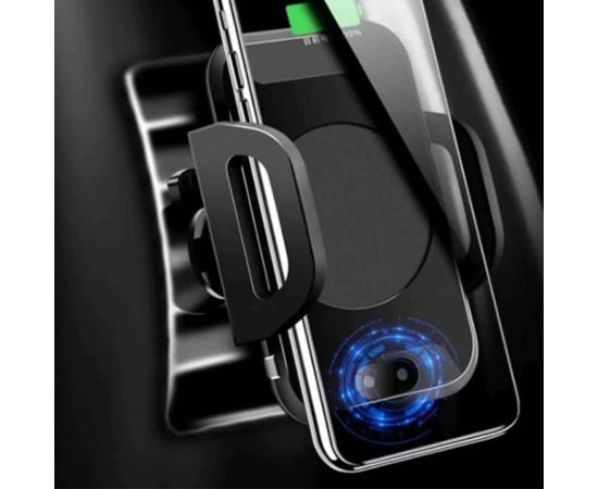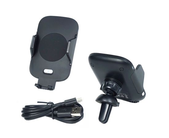 Держатель оснащен беспроводной зарядкой, что позволяет заряжать смартфон без необходимости подключения к нему проводов. Это особенно удобно в условиях ограниченного пространства в автомобиле, когда нет возможности использовать проводные зарядные устройства.