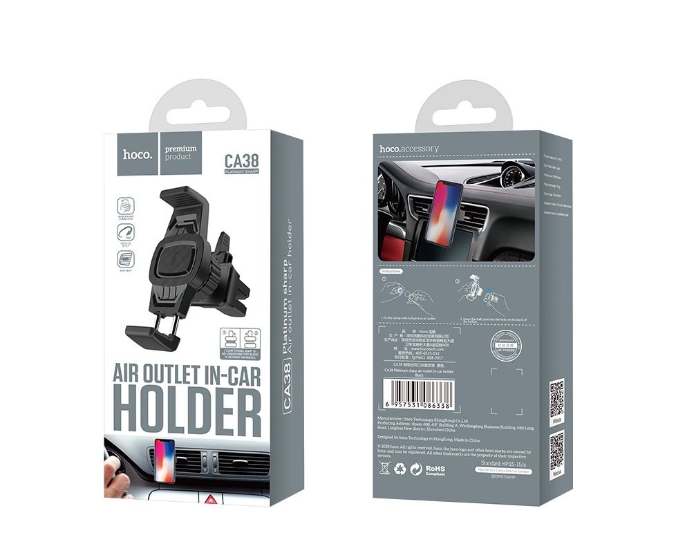 Автомобильный держатель HOCO CA38 Platinum sharp air outlet in-car (чёрно-серый)
