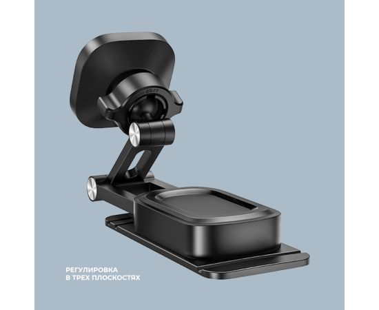 Телескопический магнитный держатель Mage Basis отлично дополнит приборную панель любого автомобиля. Держатель оснащен 6 мощными магнитами и способен выдержать устройства весом до 500 г. Благодаря выдвижной стреле смартфон может быть ближе к вам на 11 см, кроме того, поворачивать смартфон можно на все 360 градусов. Держатель крепится на надежный 3М-скотч к любой ровной и очищенной поверхности: приборной панели, стеклу и даже задней стороне дисплея. Конструкция держателя позволяет регулировать его во всех трех плоскостях.