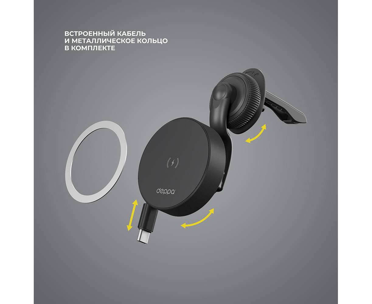 Автомобильный держатель MagSafe Roller Cable , Серый, Deppa