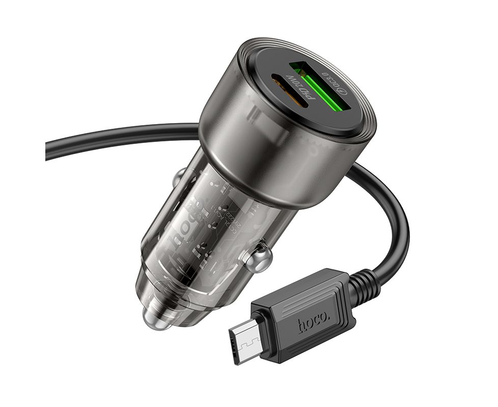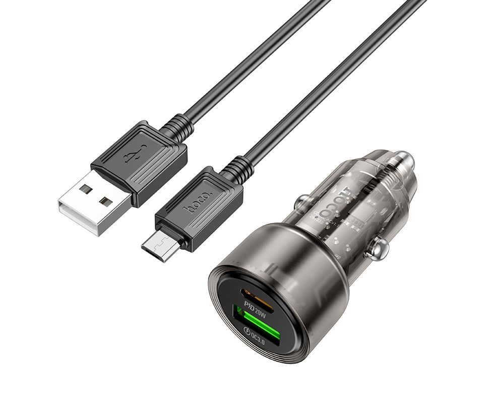 АЗУ 1USB+1Type-C 3.0A PD38W+QC3.0 быстрая зарядка для micro USB Hoco Z52 (Transparent Black)