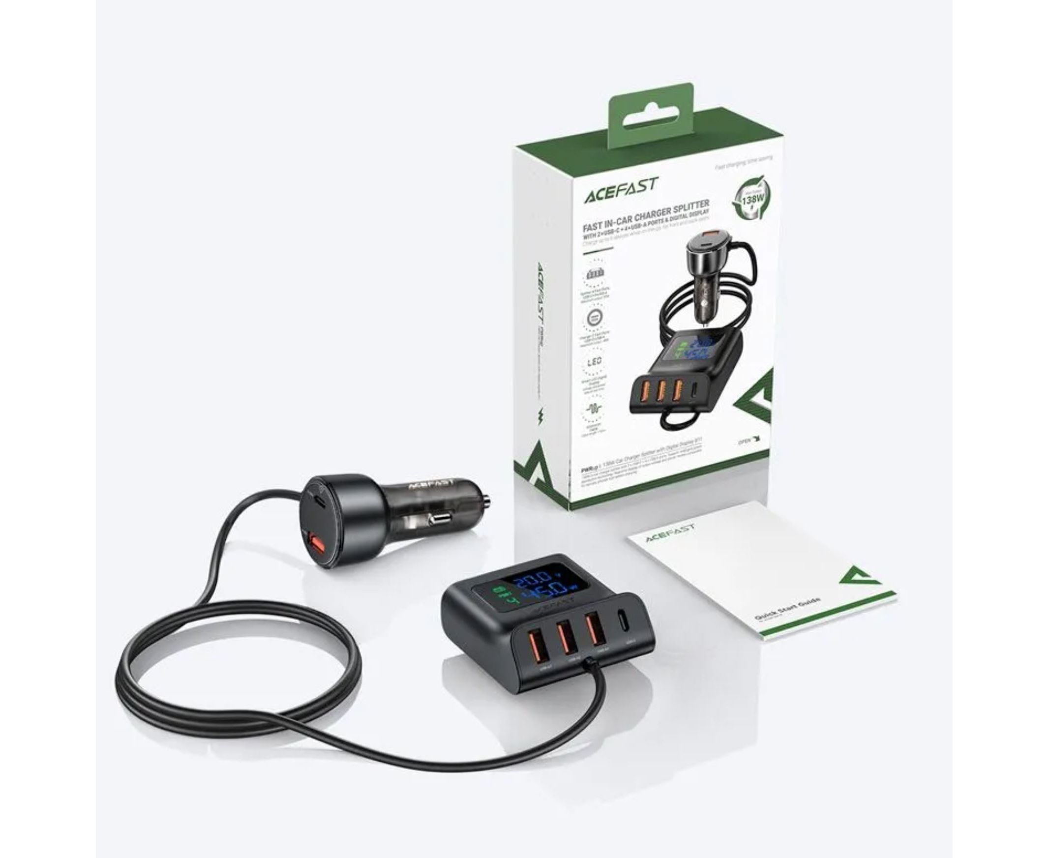 АЗУ ACEFAST B11 138W Car Charger Splitter with Digital Display (черный)