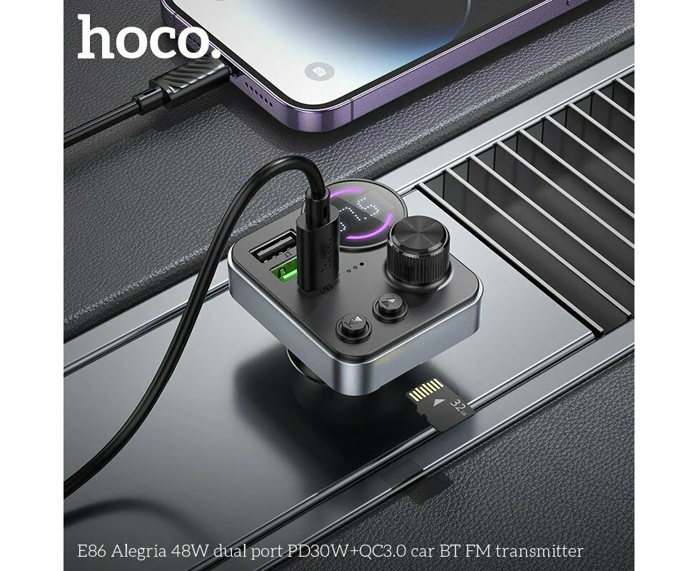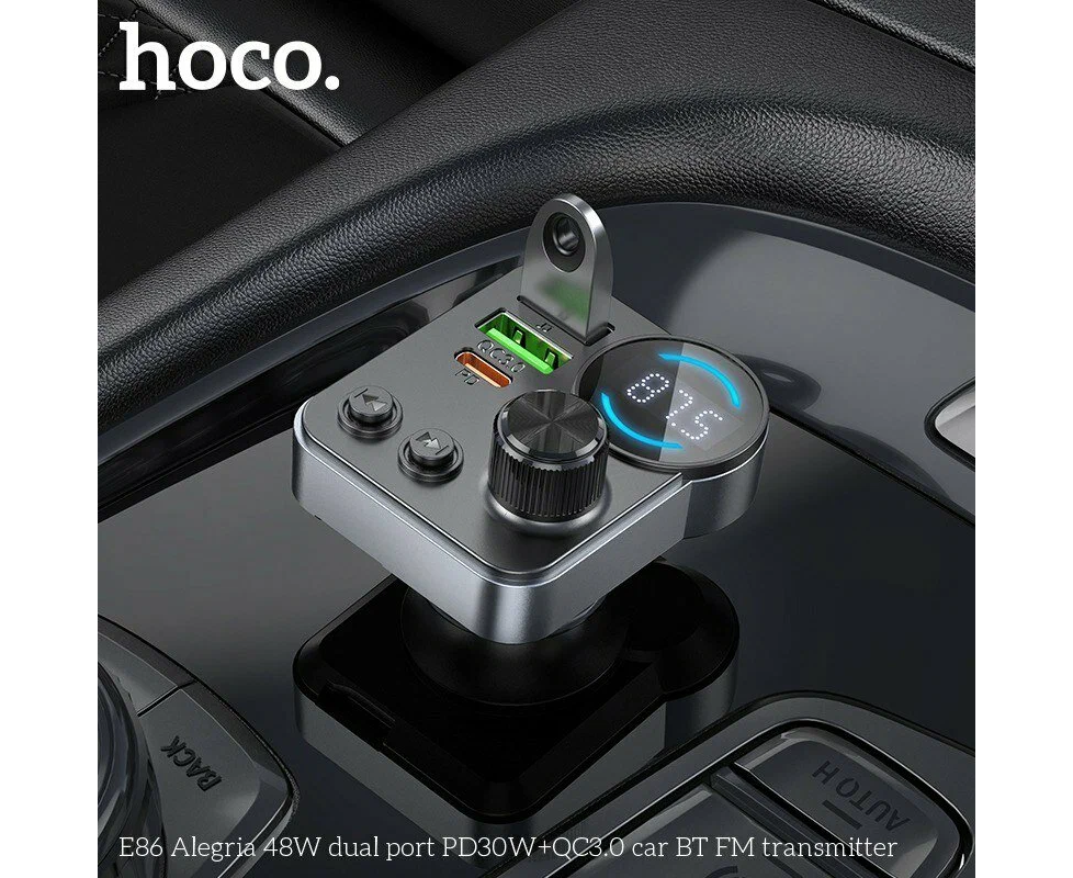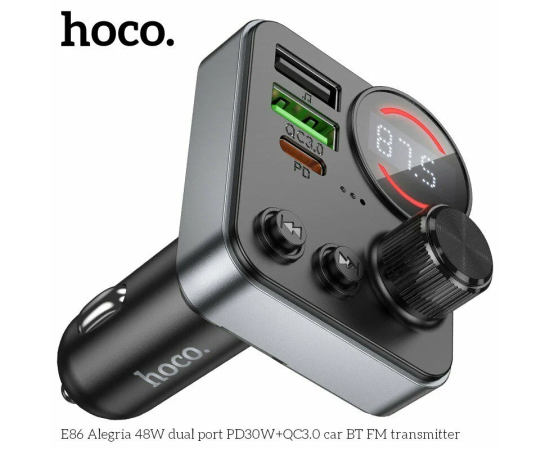 АЗУ Bluetooth FM-Трансмиттер HOCO E86 Alegria 48W dual port PD30W+QC3.0 (черный)