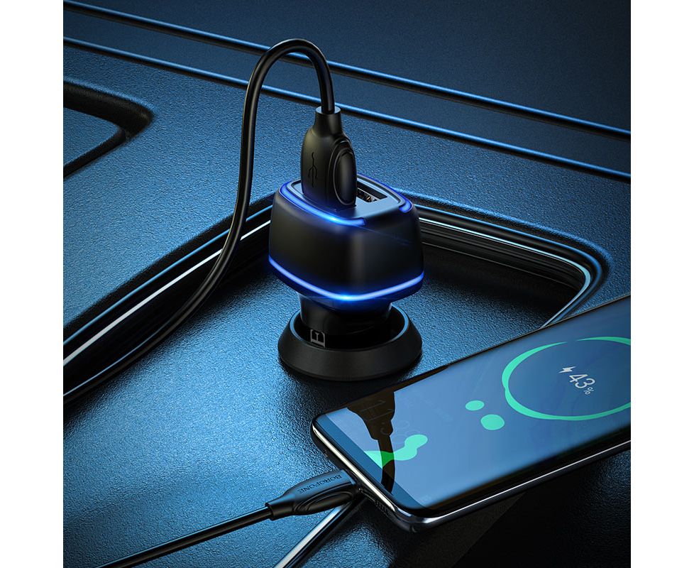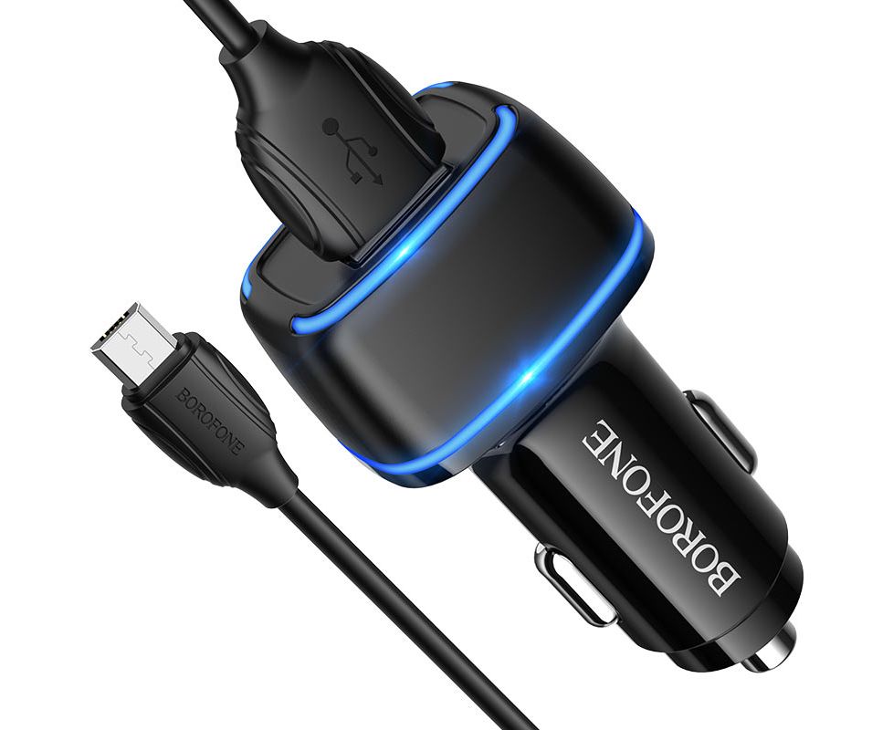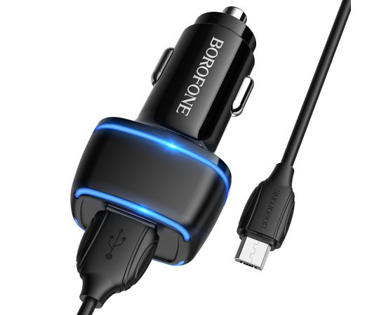 АЗУ BOROFONE BZ14 Max ambient light 5V, 2,4A, 2USB, Micro cable (чёрный)