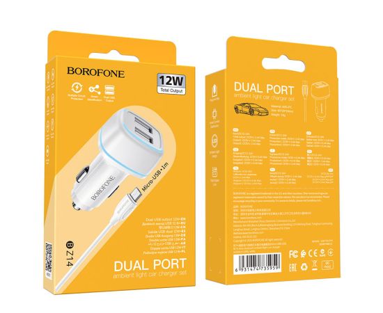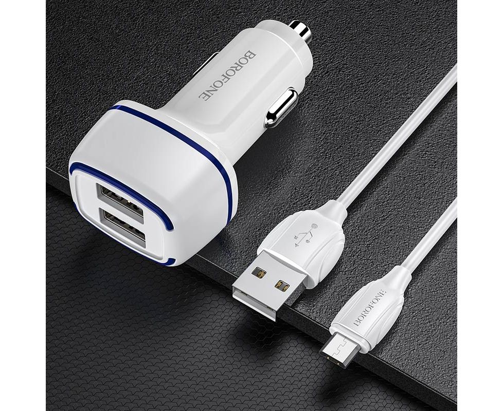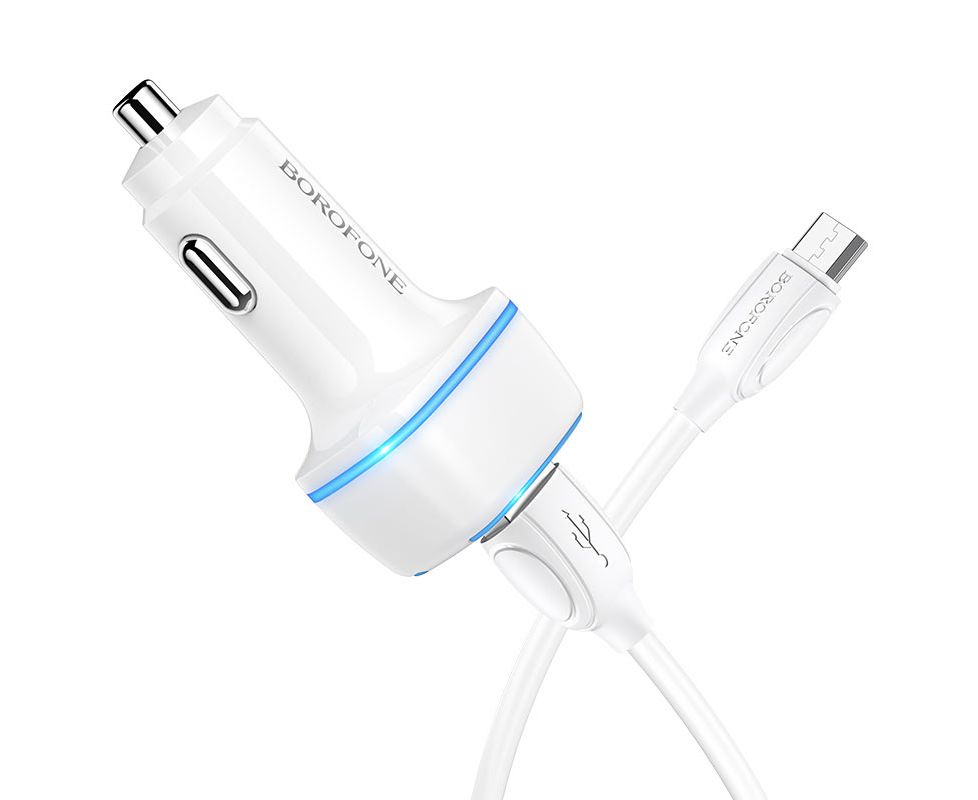 АЗУ BOROFONE BZ14 Max ambient light 2USB, 5V, 2,4A + Micro cable (белый)