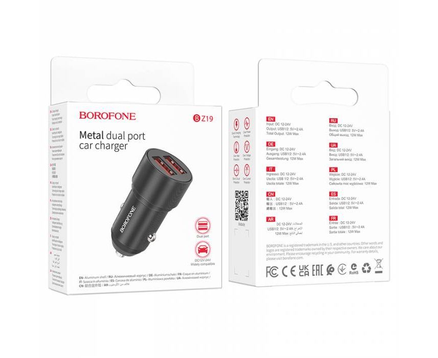 АЗУ BOROFONE BZ19 Wisdom, 2USB, cabel Micro (чёрный)