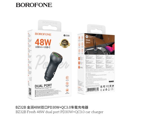 АЗУ BOROFONE BZ32B Fresh 48W dual port PD30W+QC3.0 (металически серый)
