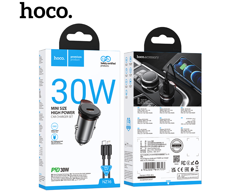 АЗУ HOCO NZ16 Rigorous single port PD30W car charger metal grey