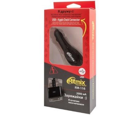 АЗУ RITMIX RM-116 Apple 30pin 2А + USB