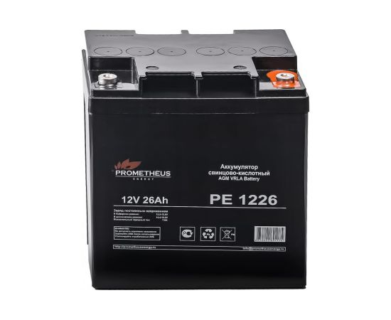 Батарея аккумуляторная Prometheus (26 Ач; 12 В) Prometheus energy PE1226 подходит для использования как в буферном, так и в циклическом режимах работы. Рекомендована для применения в переносных и портативных приборах. За счет стабильно высокой однородности внутреннего сопротивления прекрасно подходит для использования в источниках резервного энергоснабжения и блоках резервного питания.