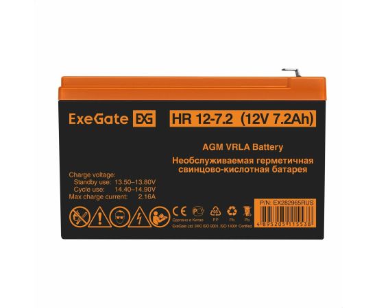Батарея ExeGate HR 12-7.2 EX282965RUS (12V 7.2Ah), клеммы F2