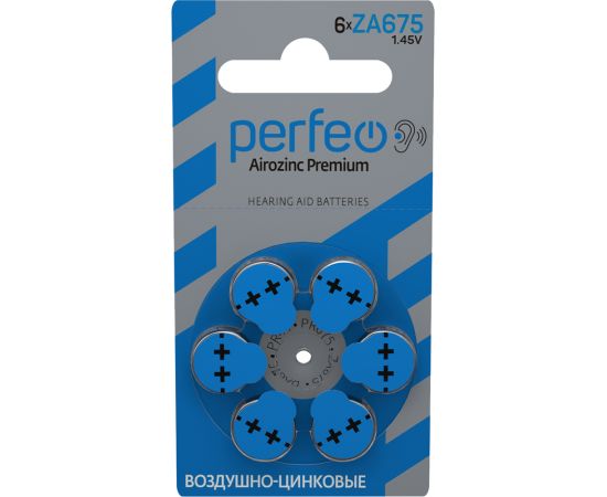 Батарейка для слуховых аппаратов Perfeo ZA675/6BL Airozinc Premium