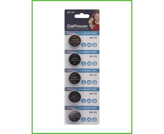 Батарейка GoPower CR2025 BL5 Lithium 3V (5/100/2000)