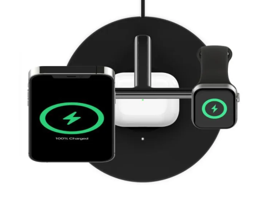 - Быстрая беспроводная зарядка для iPhone серий 16/15/14/13/12, Apple Watch и AirPods