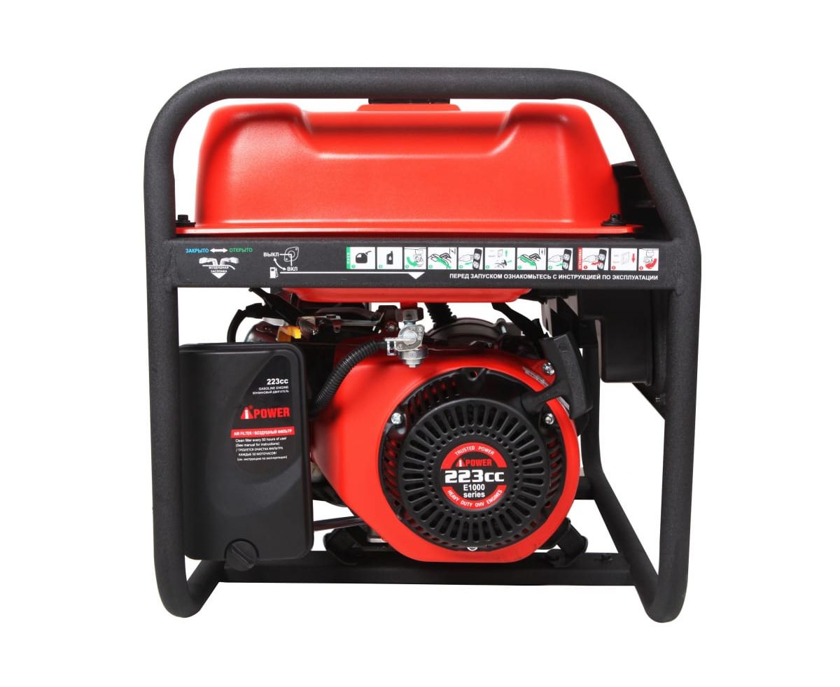 Бензиновый генератор A-iPower A3500X 20104 - отличное решения для населенных пунктов, где часто отключают электрическую энергию. Также эта станция подходит для питания дачных домиков. Модель уникальна, так как может выдержать 7,4 кВа пусковой мощности, что делает ее подходящей для подключения техники, требующей высоких пиковых значений мощности. Генератор оборудован автоматом защиты, предотвращающим поломку техники при перегрузке. A-iPower A3500X оснащен компактным гильзованным 4-тактный OHV-двигателем объемом 223 куб. см с ручным стартером. На панели управления находится одна стандартная розетка 230В/16А, одна силовая розетка 230В/16А, и разъем USB, от которого можно подзарядить смартфон, планшет и другие гаджеты. На цифровой дисплей в режиме реального времени выводятся сведения о работе генератора.