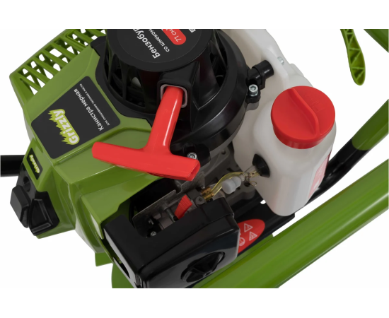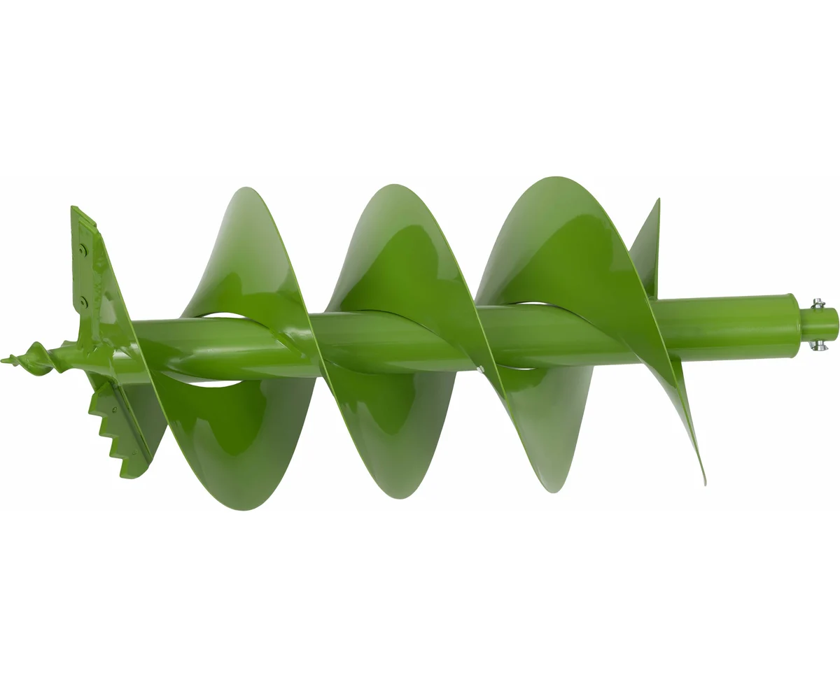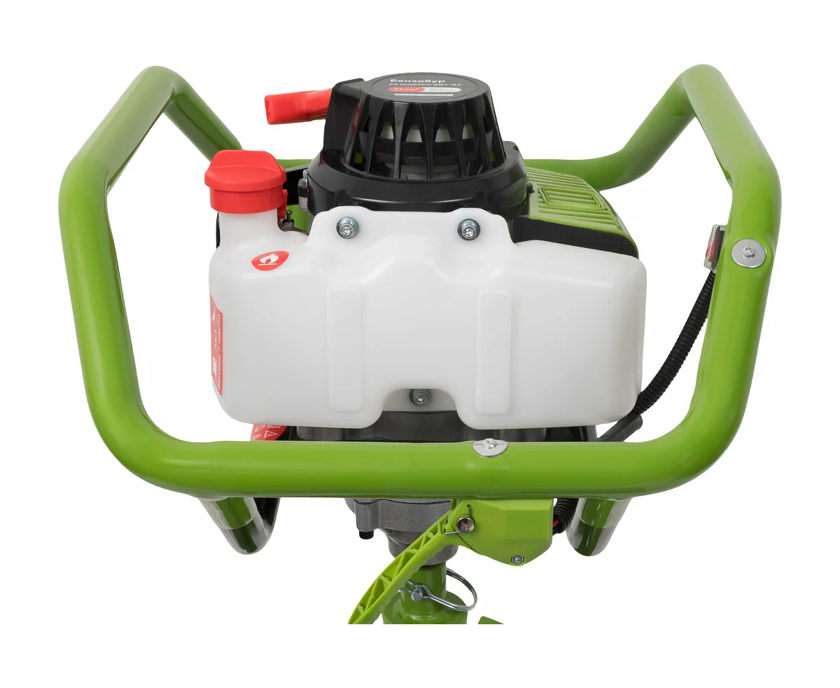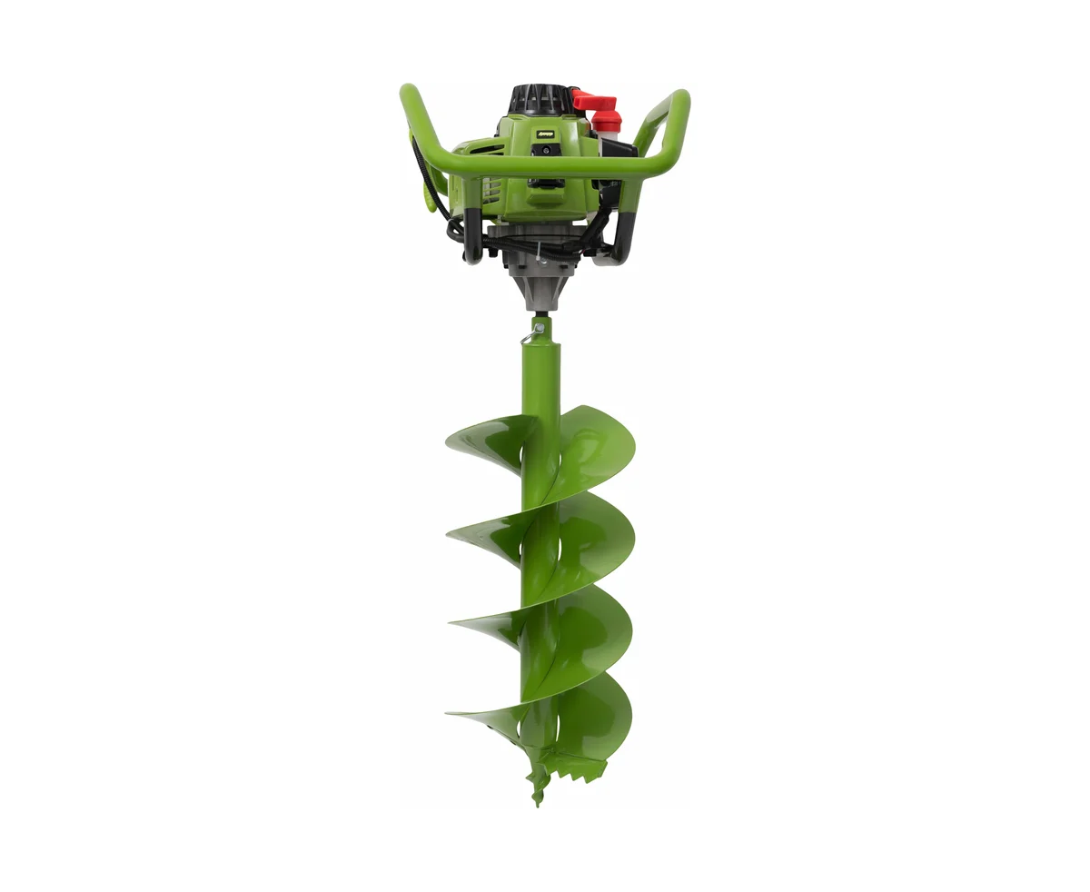 Максимальный диаметр бура составляет 300 мм, что делает его подходящим для различных задач. Устройство оснащено 2-тактным двигателем, который развивает до 8800 оборотов в минуту, обеспечивая стабильную работу. Емкость топливного бака в 1,6 литров позволяет длительное время работать без дозаправки. В комплект входит шнек, что упрощает подготовку к работе.