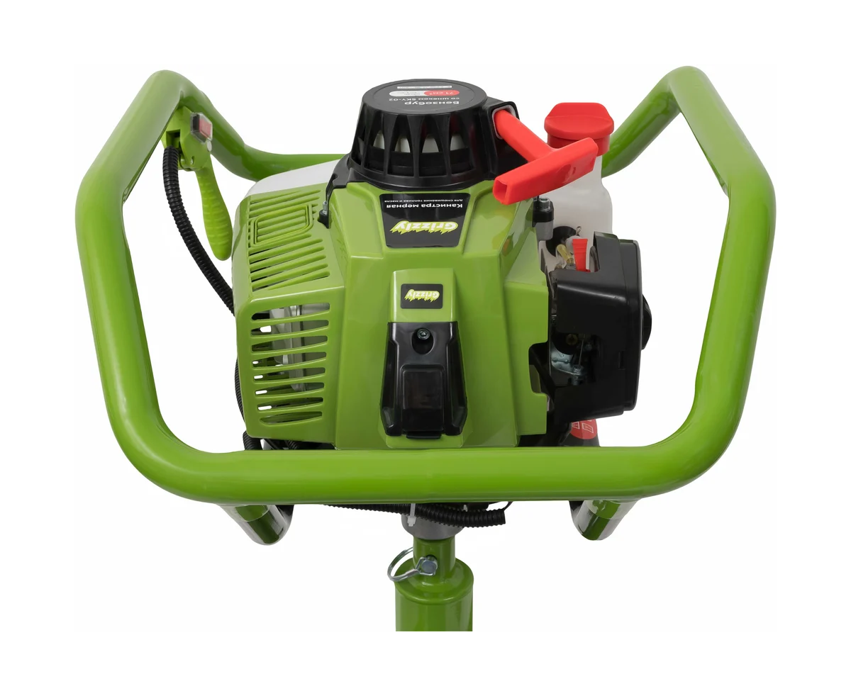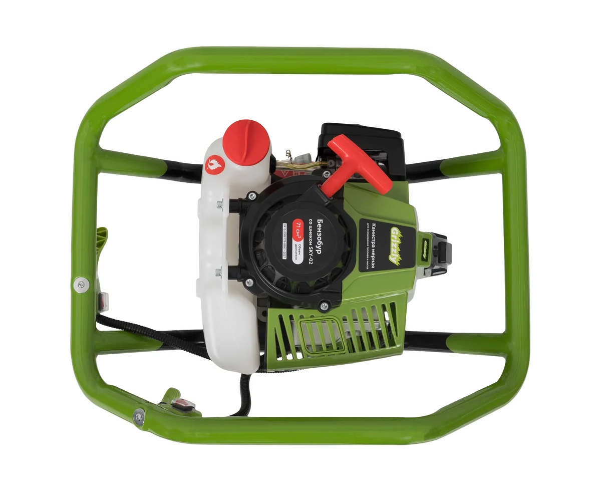 Бензобур Grizzly SKY-02 представляет собой профессиональное оборудование, предназначенное для эффективного бурения. С мощностью 3,2 лошадиных силы и объемом двигателя 71 см³, он обеспечивает высокую производительность, что позволяет быстро и качественно выполнять работы.